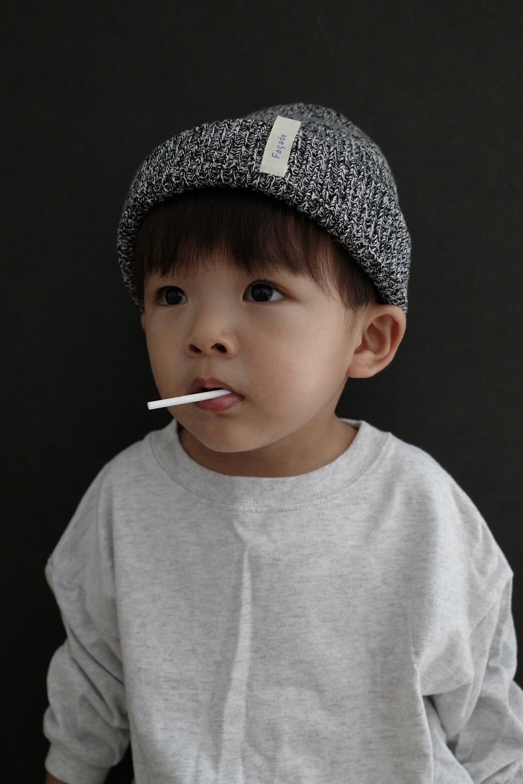 しっかりとした厚みと伸縮性のあるリブ編みで、ふんわりと頭を包み込んでくれます。
