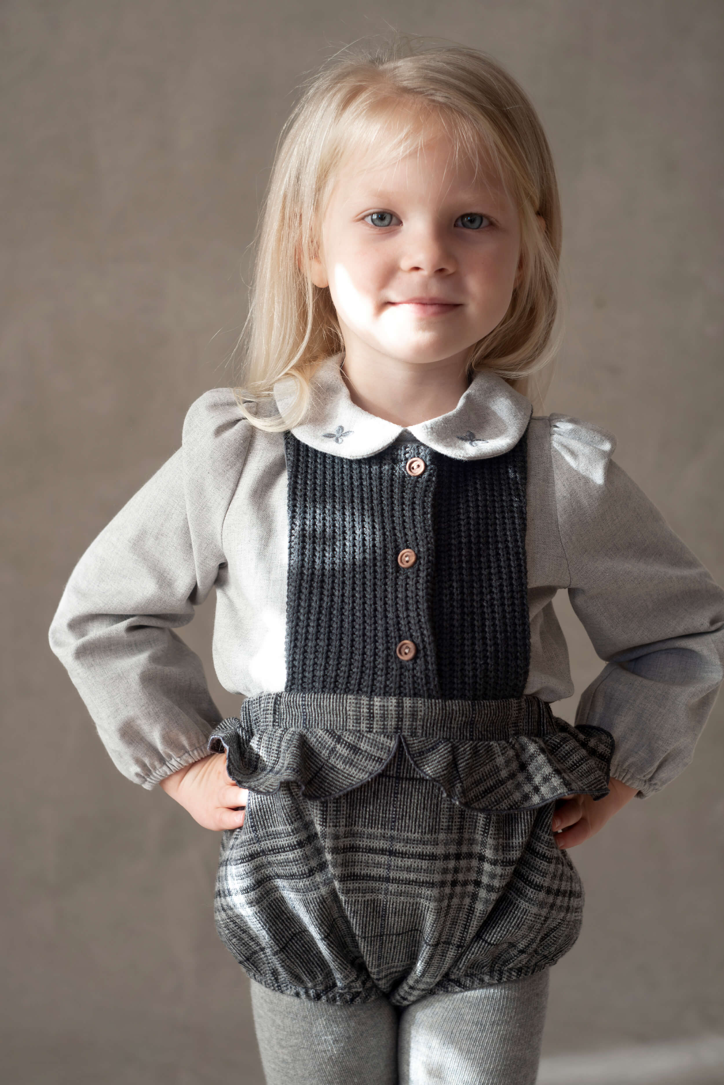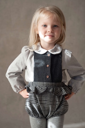 やわらかなウール素材で仕立てられたロンパーススーツ。