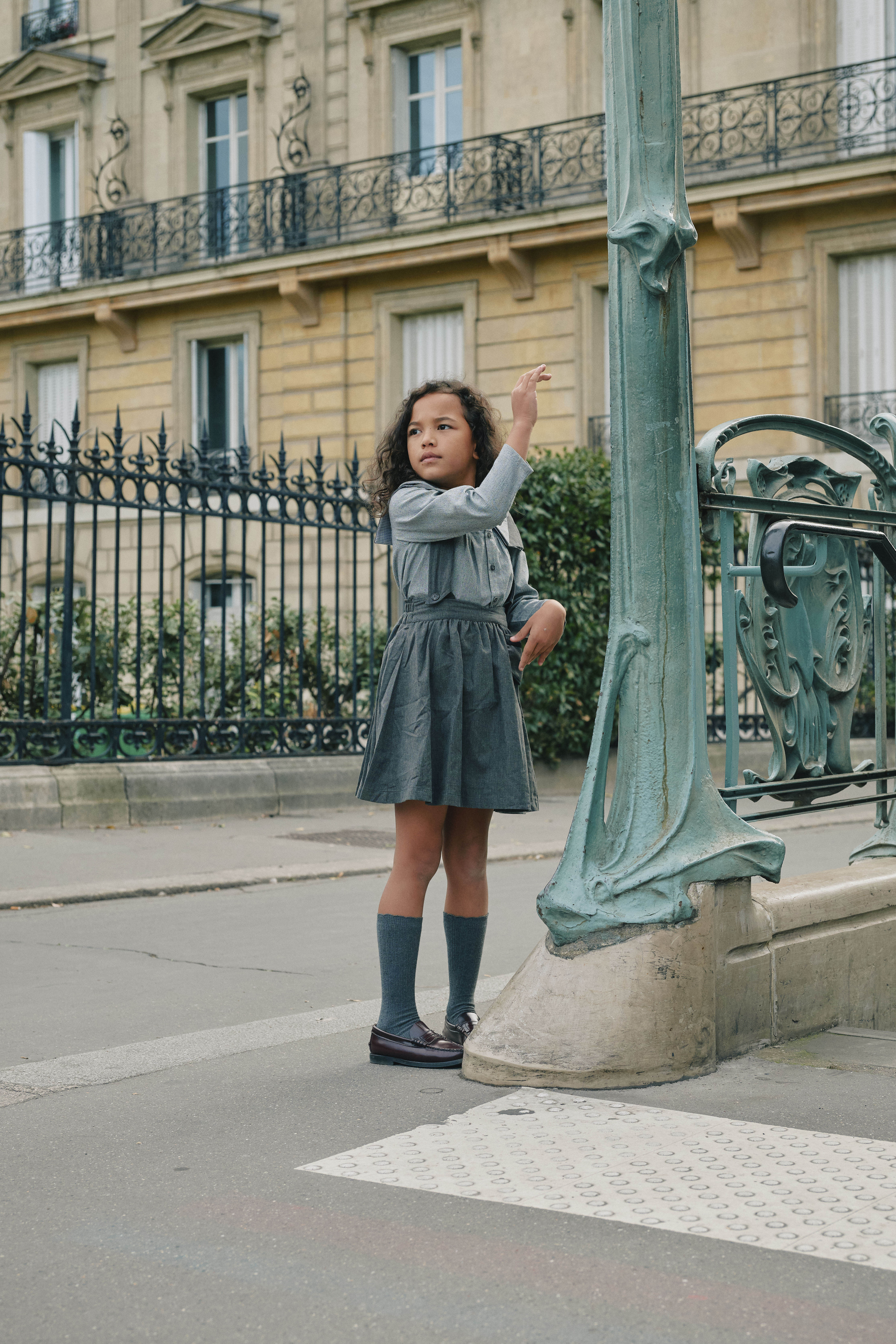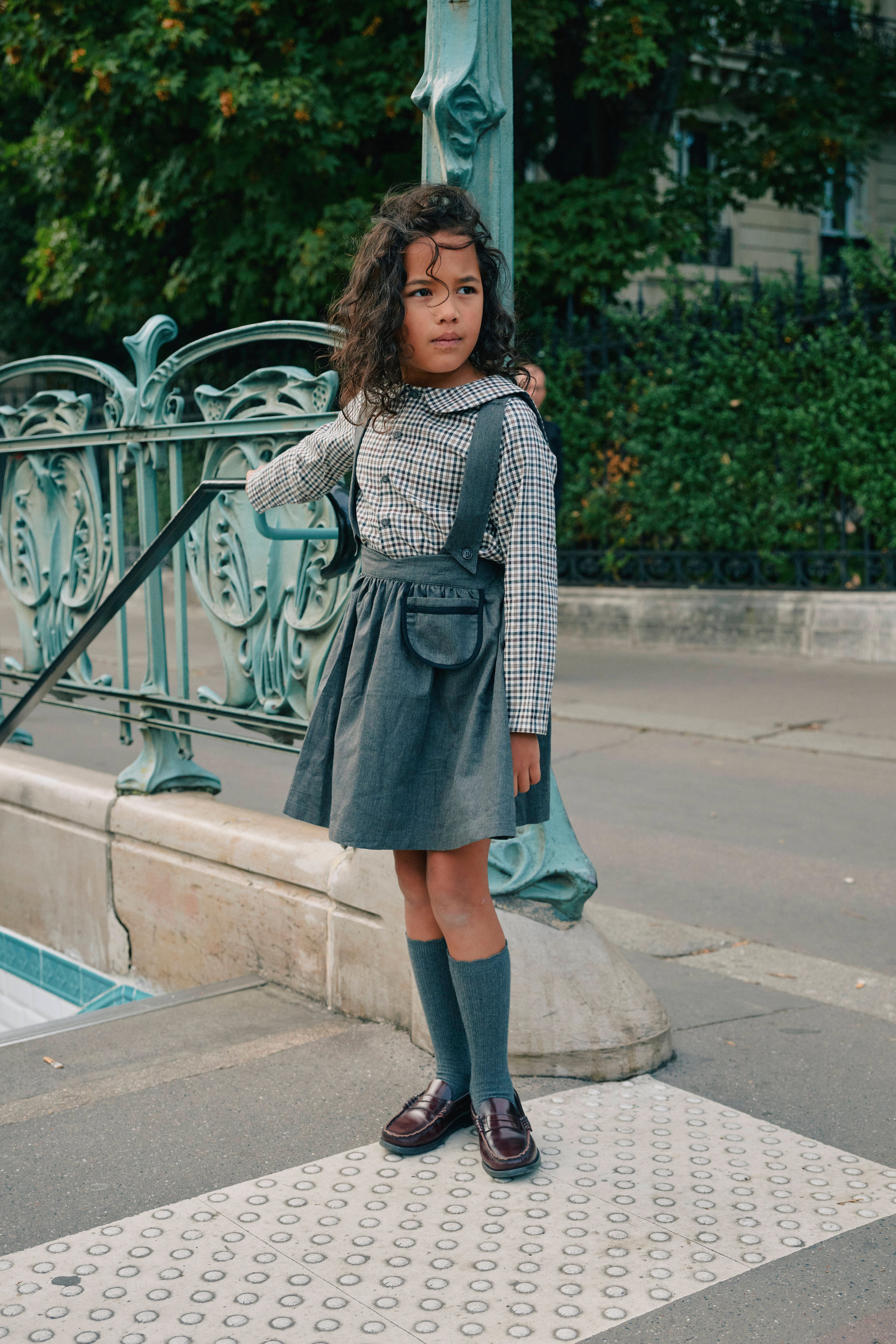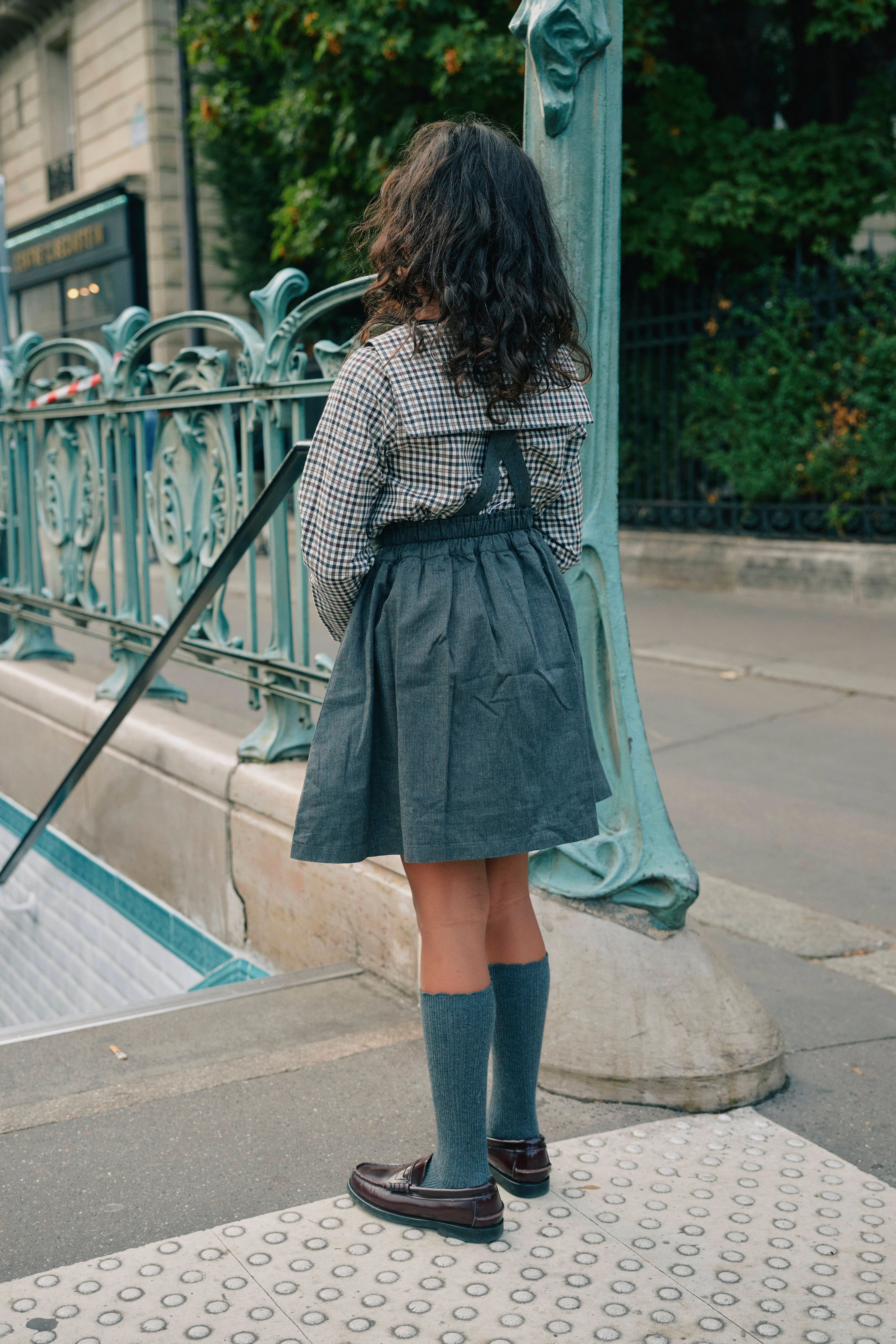 グレーのサス付きスカート。