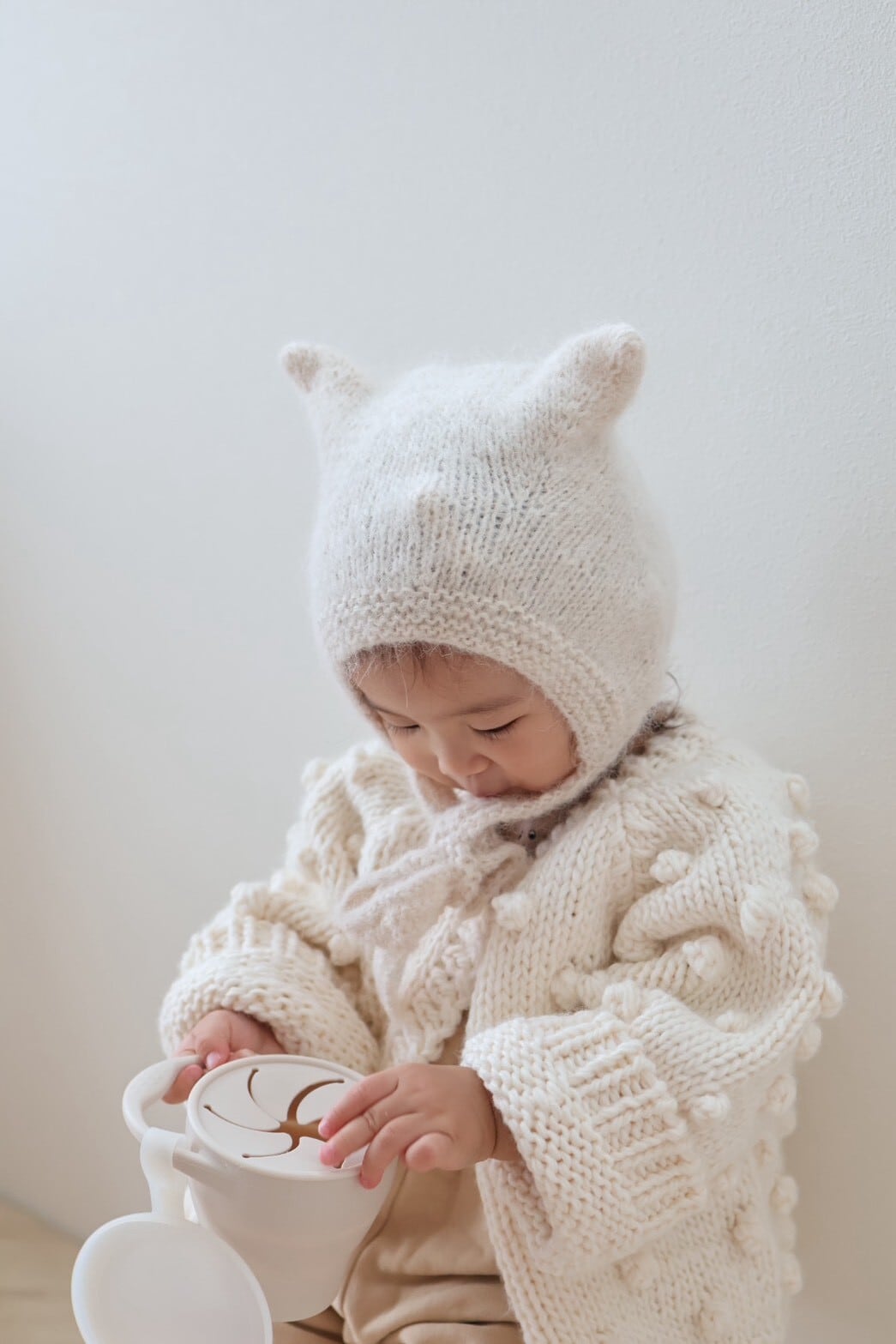 天然素材の風合いを活かしたニットは、赤ちゃんの肌にもやさしく、季節を問わず心地よく。