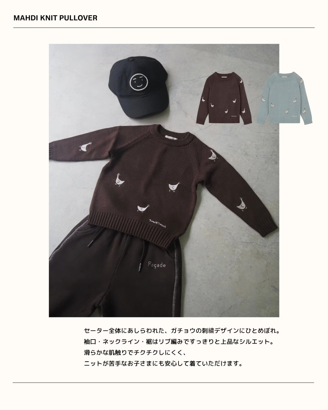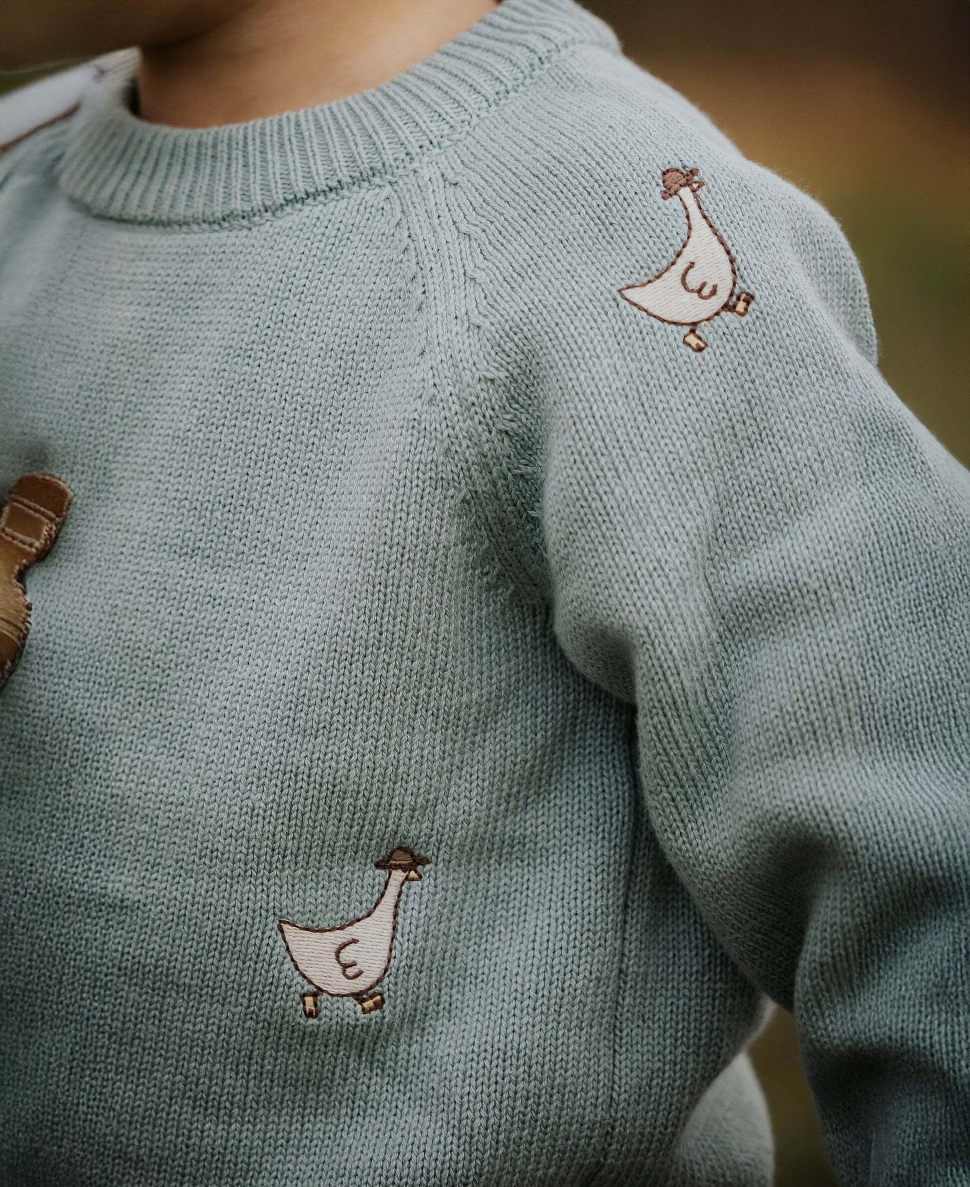 セーター全体にガチョウの刺繍が施されており、子供らしい可愛いアイテムです。