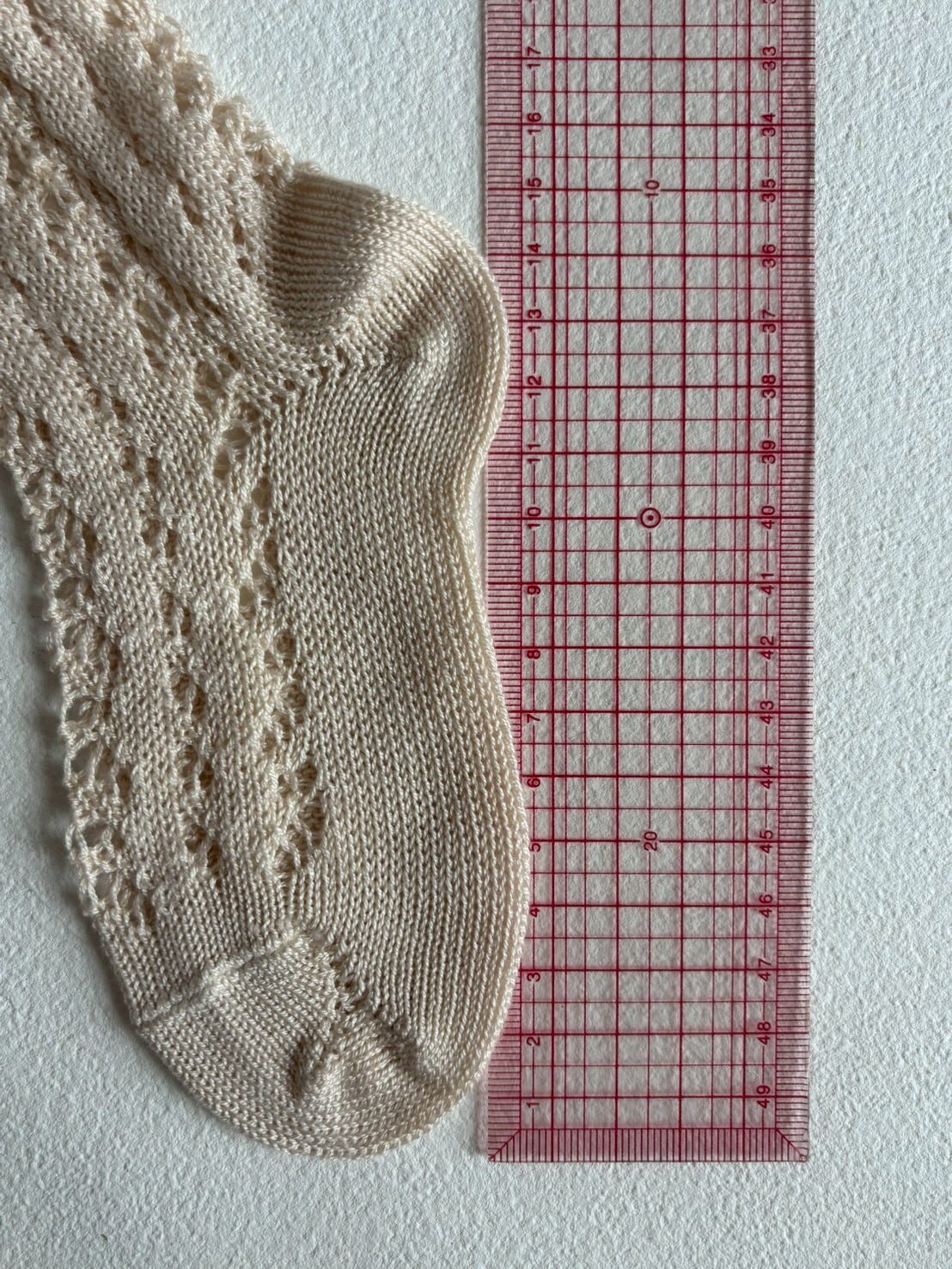 上品なクロシェ風の編み模様が足元を華やかに見せてくれます。