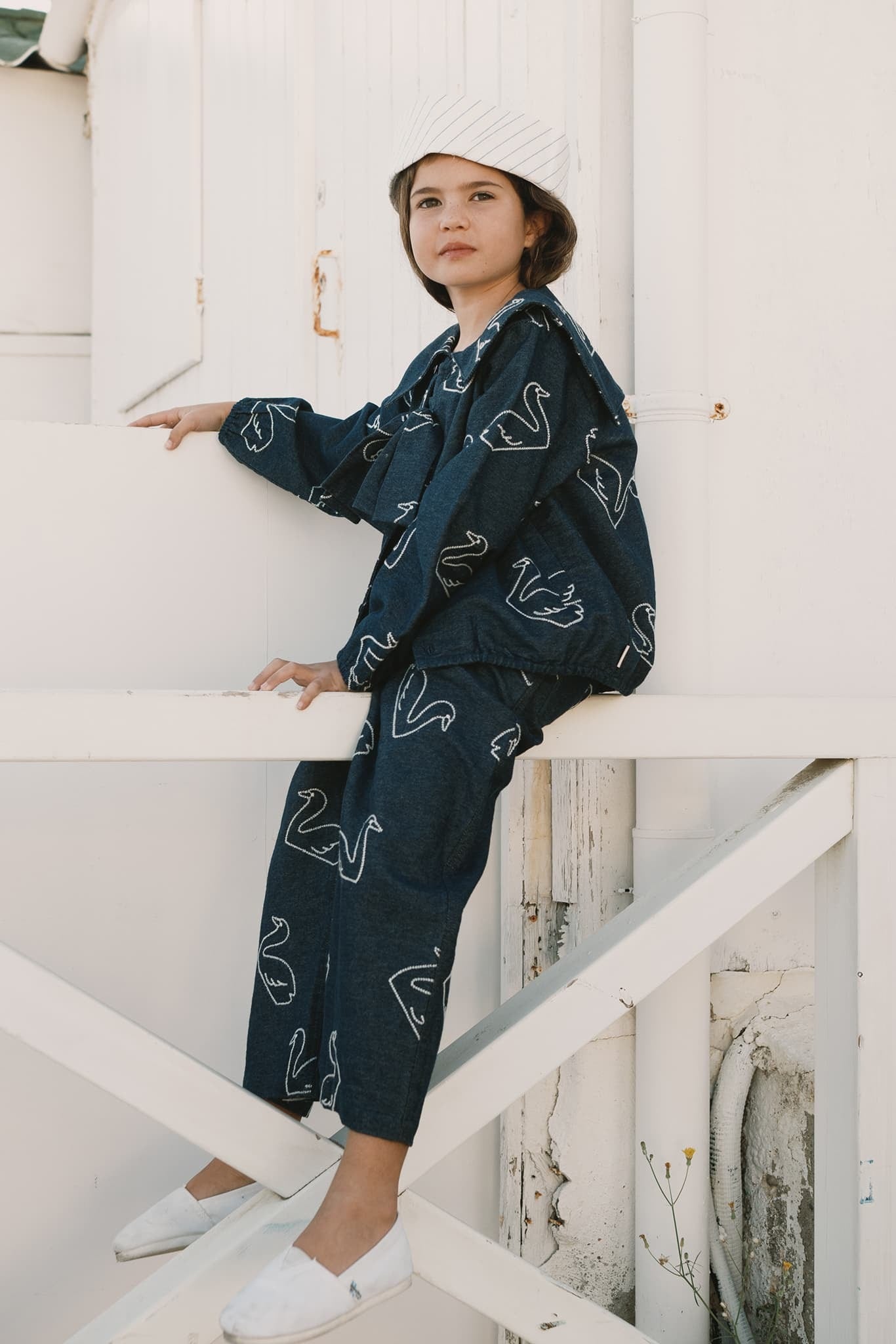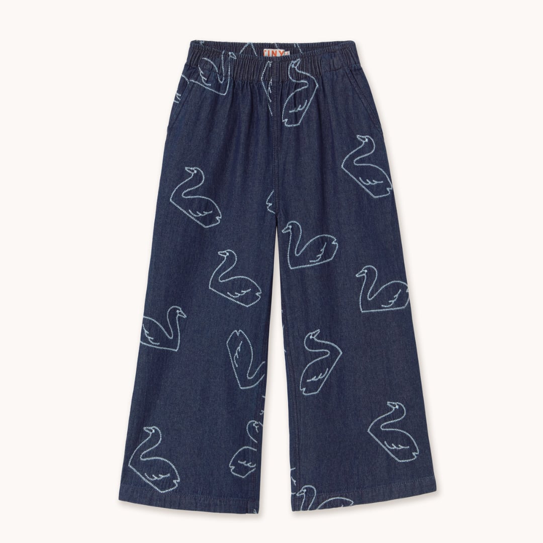 大きなスワン刺繍が印象的な、TINYCOTTONSらしいデニムパンツ。