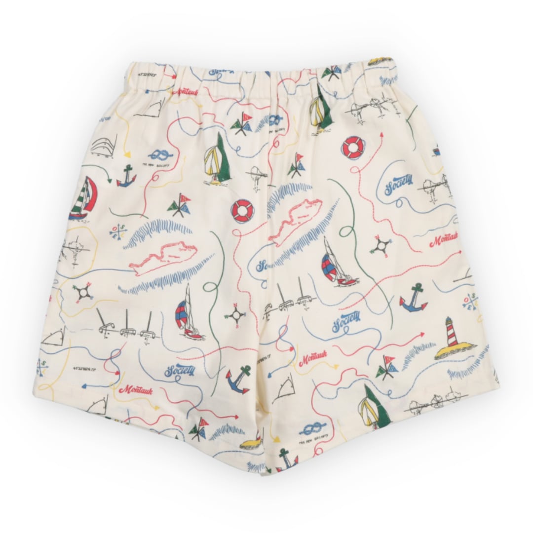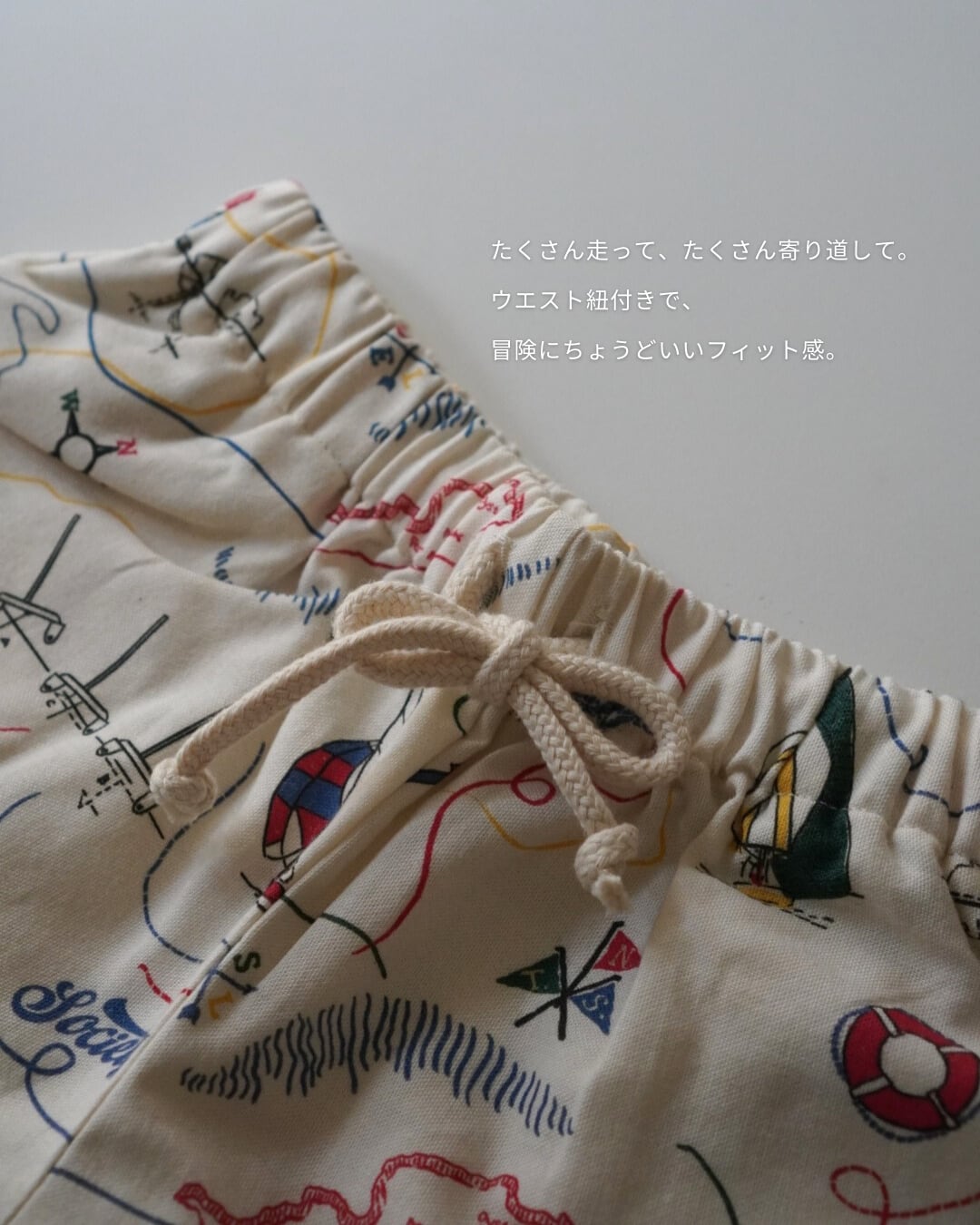 大人が見ても可愛いと感じるバランスが魅力の地図柄ハーフパンツ。