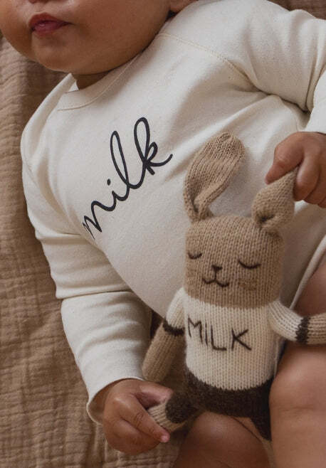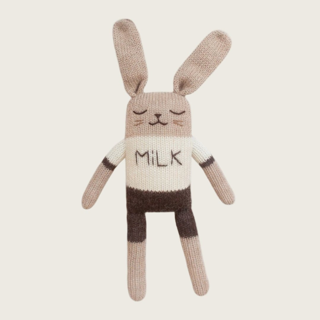 クラシックなO~Z Milkデザインをまとった、やわらかなニットバニー。