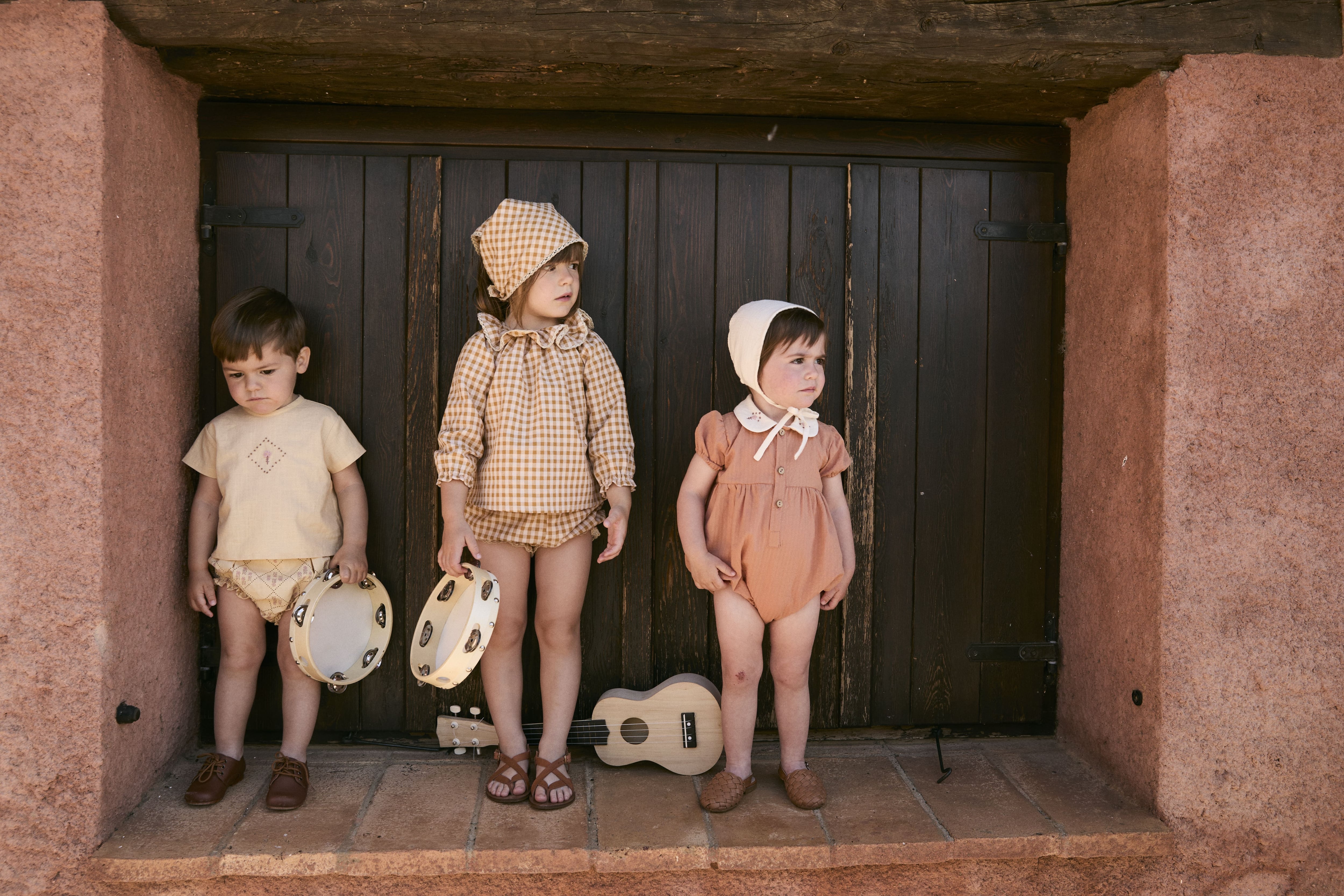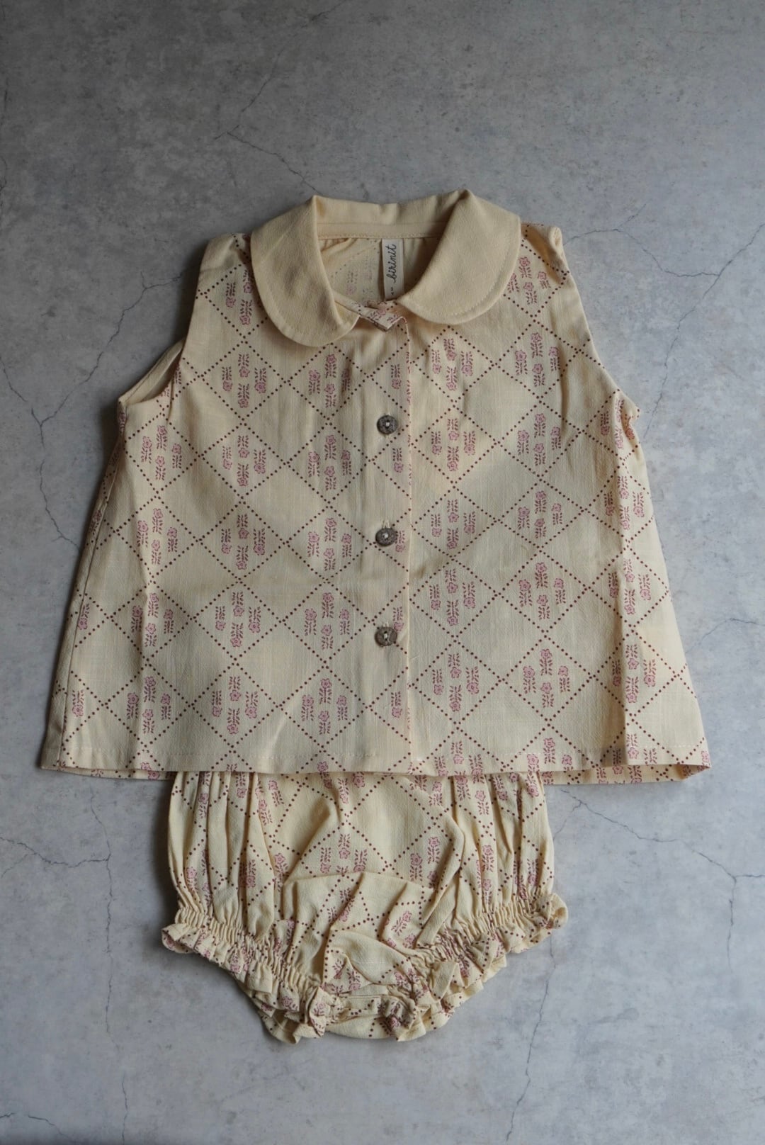 ウエスト位置を高めにデザインし、ころんとしたシルエットがより愛らしく見える一枚です。