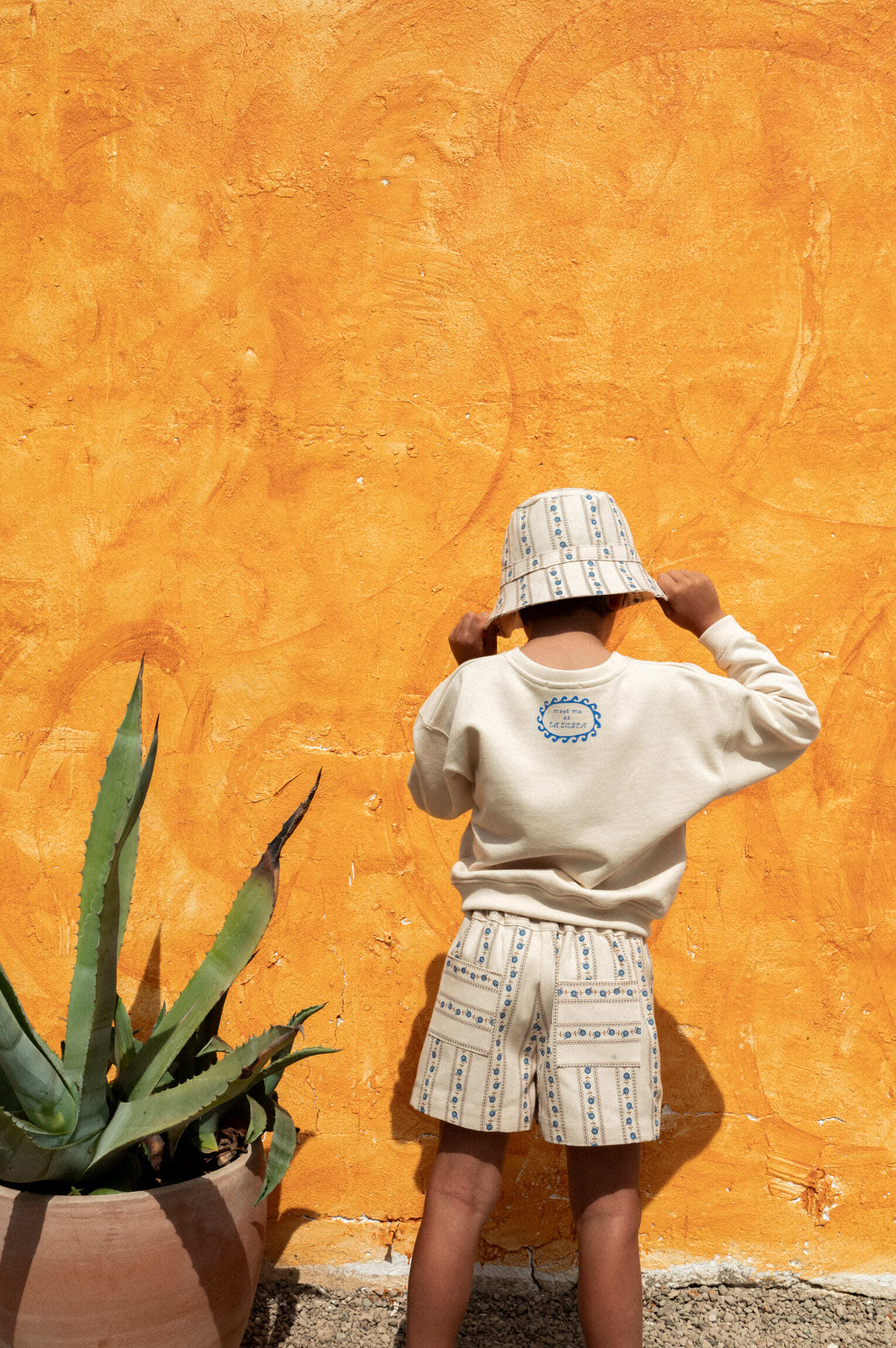 Sariñenaシリーズと同じ生地を使用した、やさしい雰囲気のバケットハット。