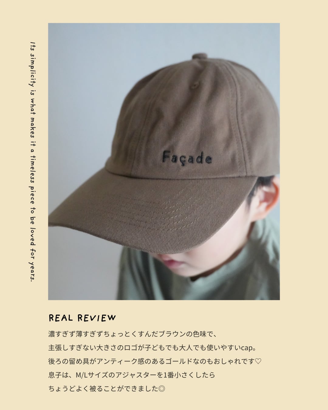façadeらしいシンプルで洗練されたデザインのキャップ。