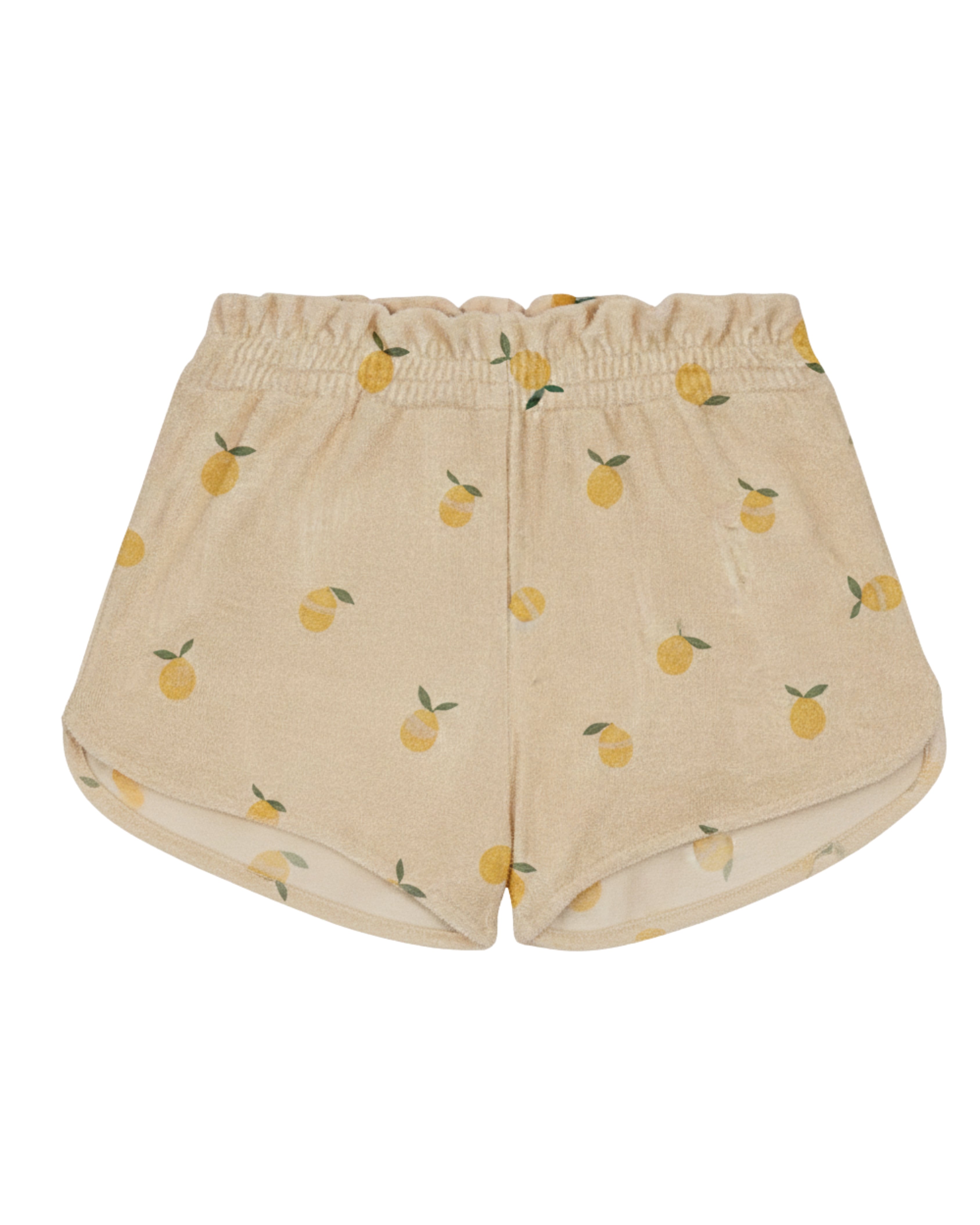 ナチュラルなサンドカラーに、レモン柄を散りばめたショートパンツ。