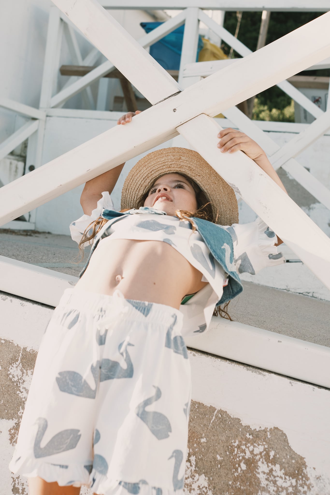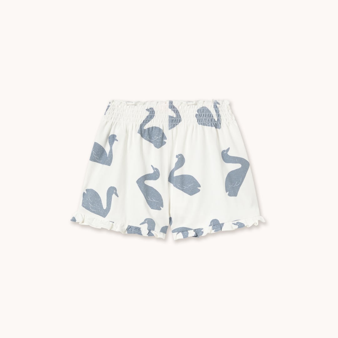 スワンモチーフが散りばめられたショートパンツ。