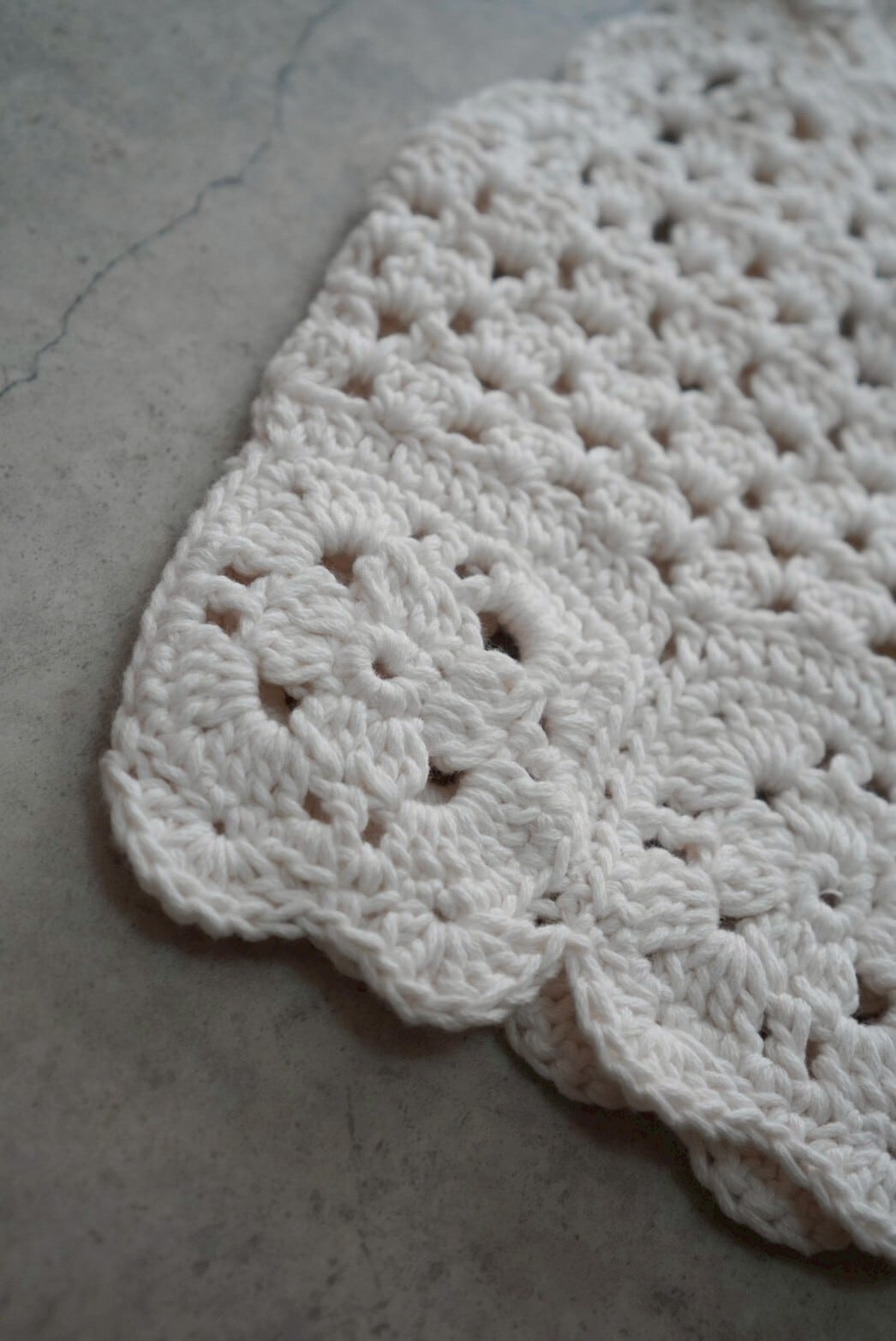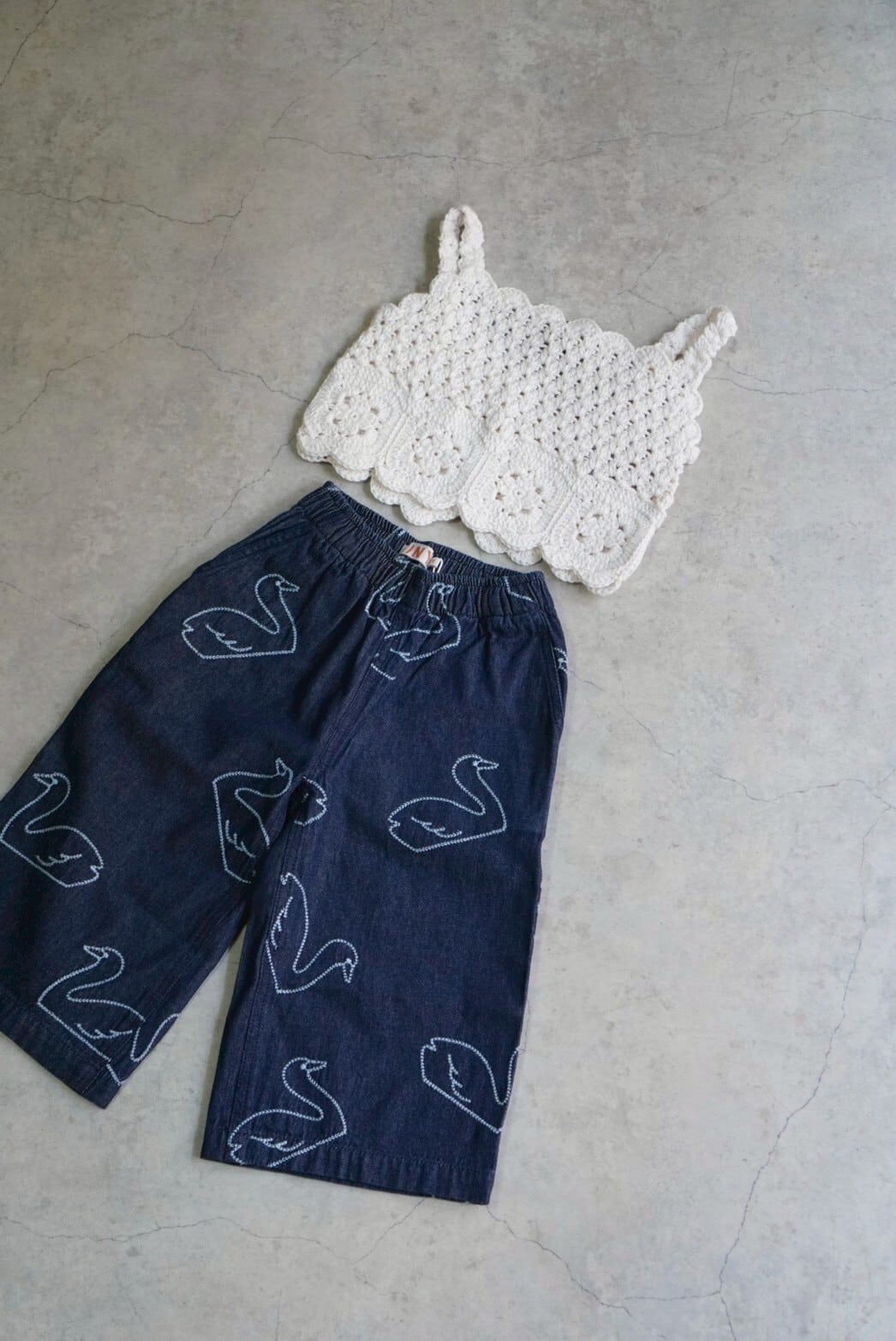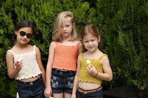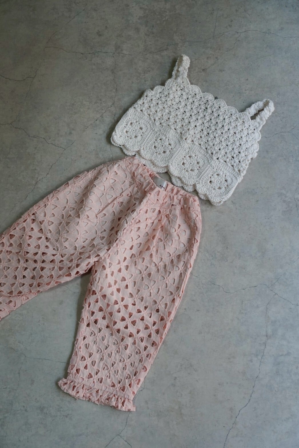 繊細なかぎ編みで仕立てられた、ハンドメイドの温もりを感じるトップス。