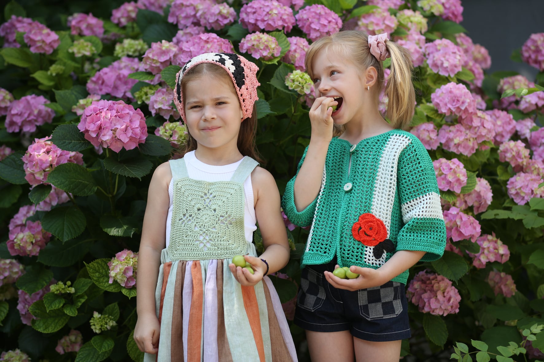 手編みならではの繊細なフラワーモチーフと、