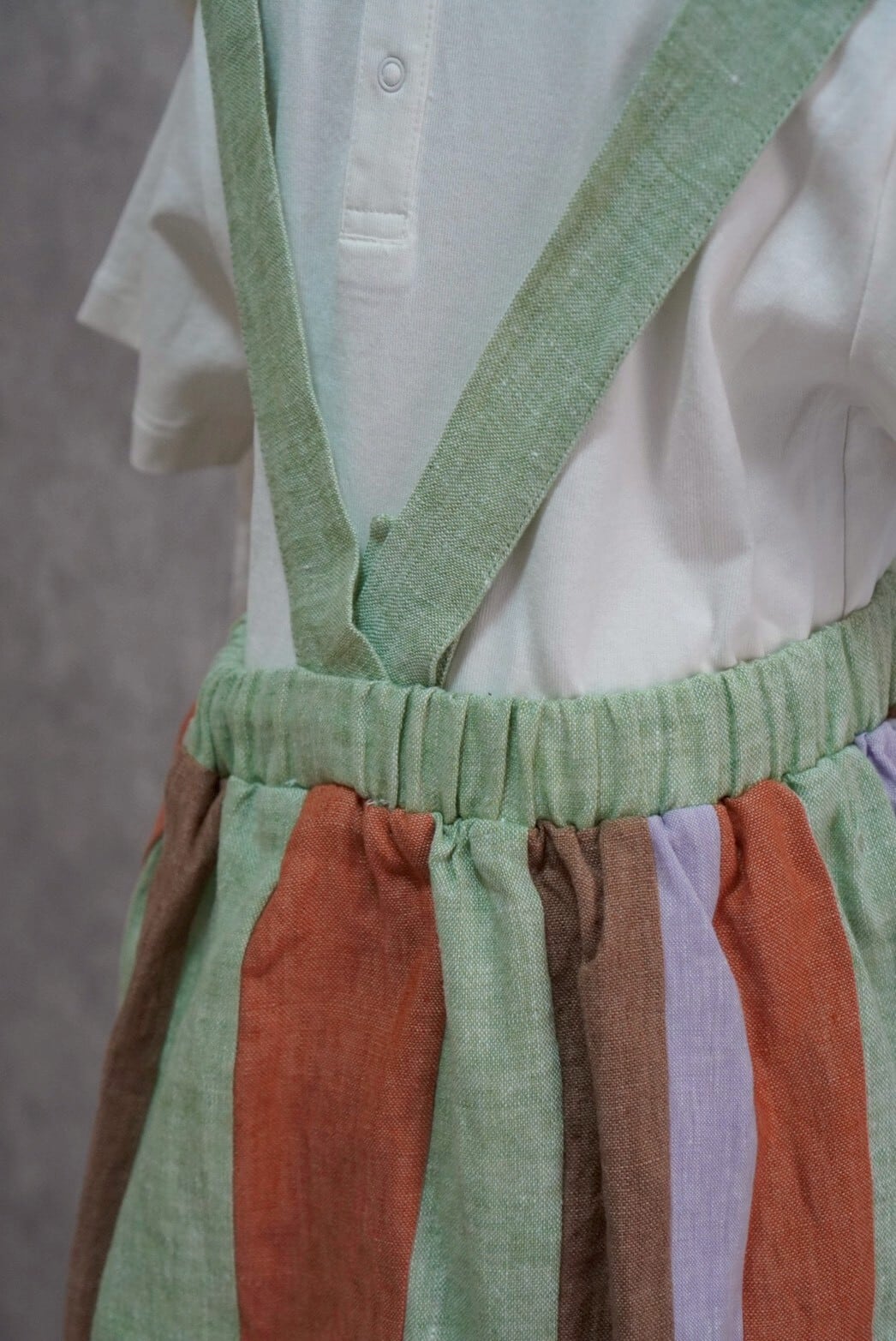 肩紐は2段階で調整可能で、スカートには裏地が付いていて安心。