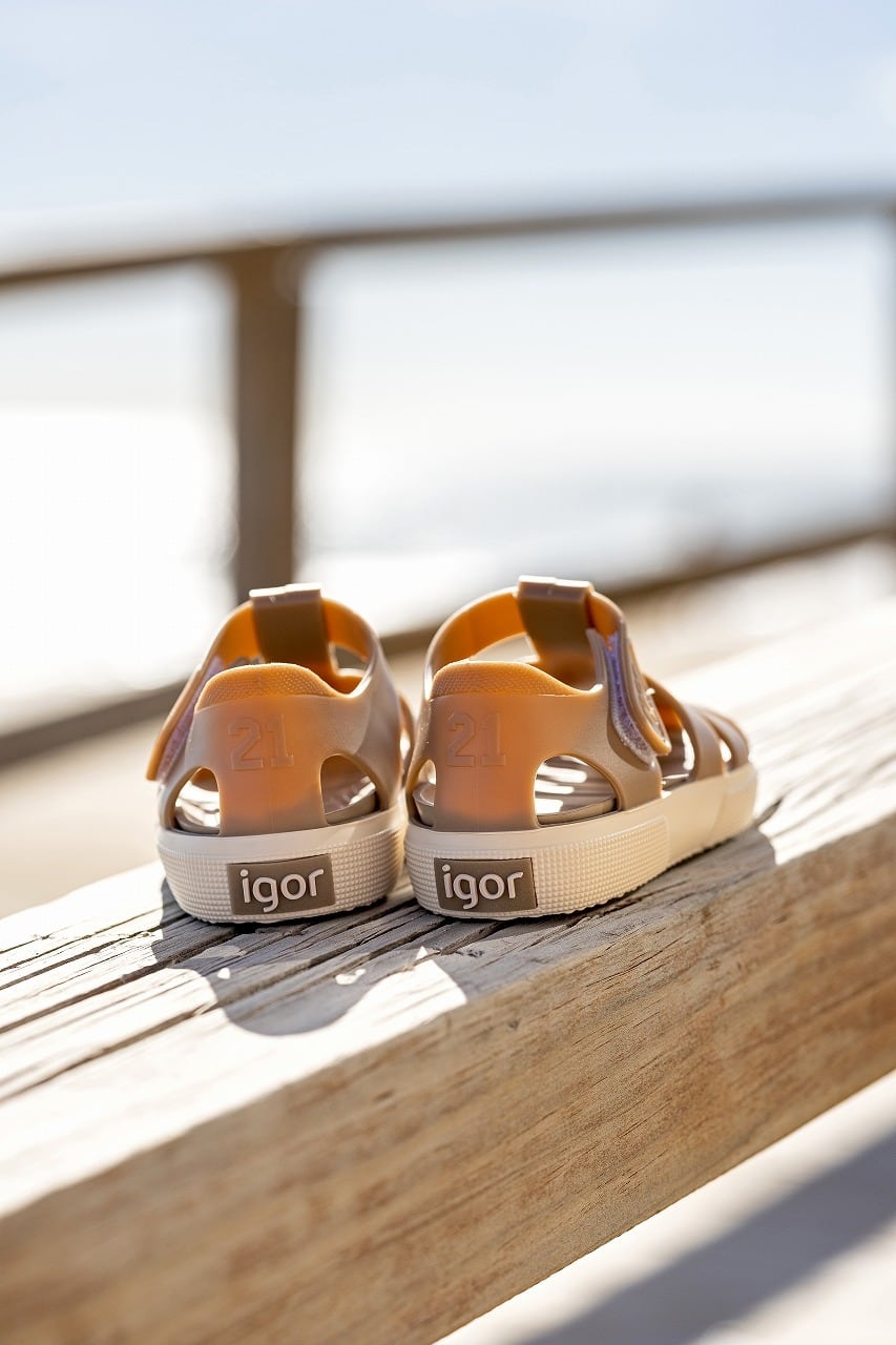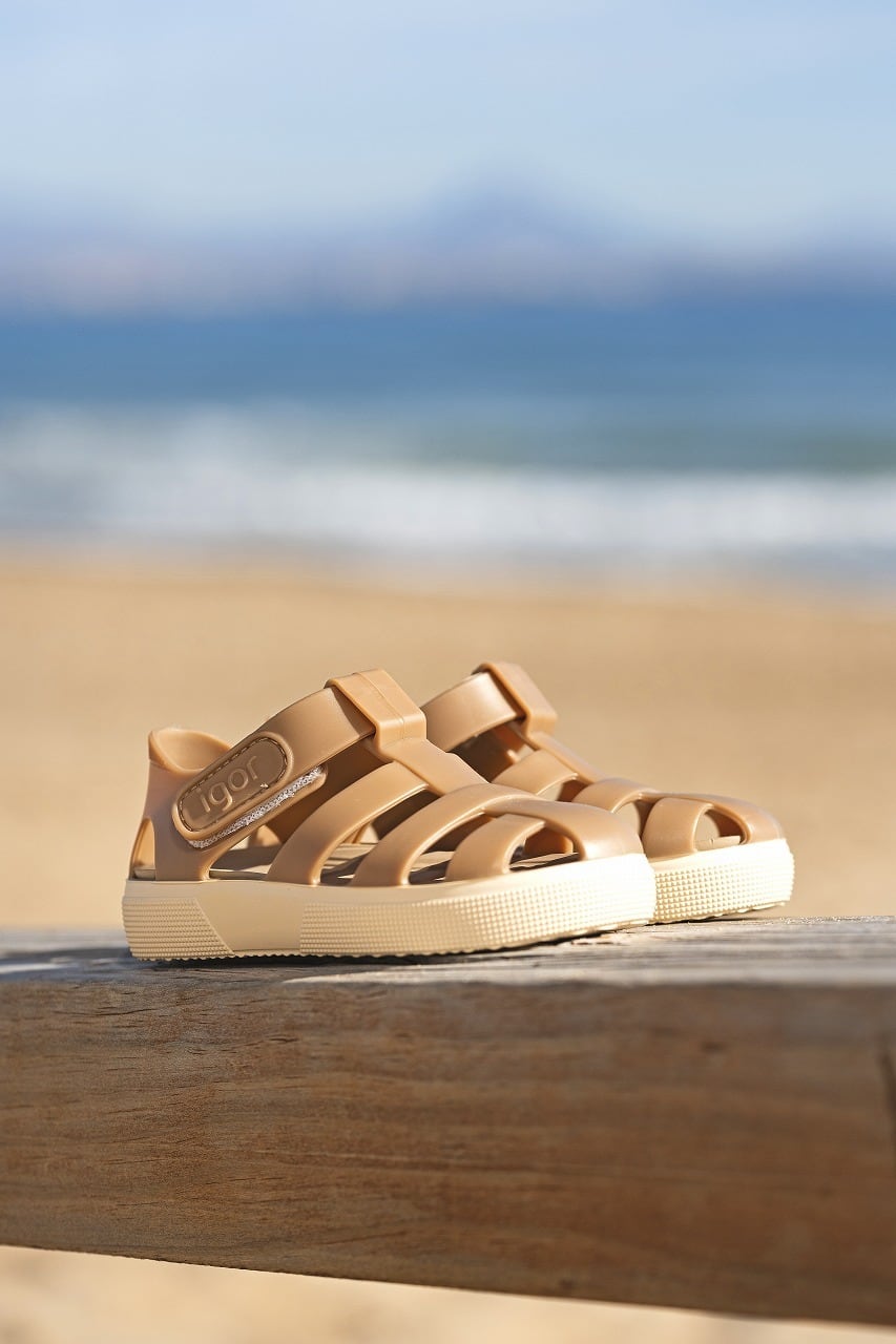 遊びや水辺シーンに最適な柔らかく軽い素材 と、丈夫で快適な履き心地が魅力。