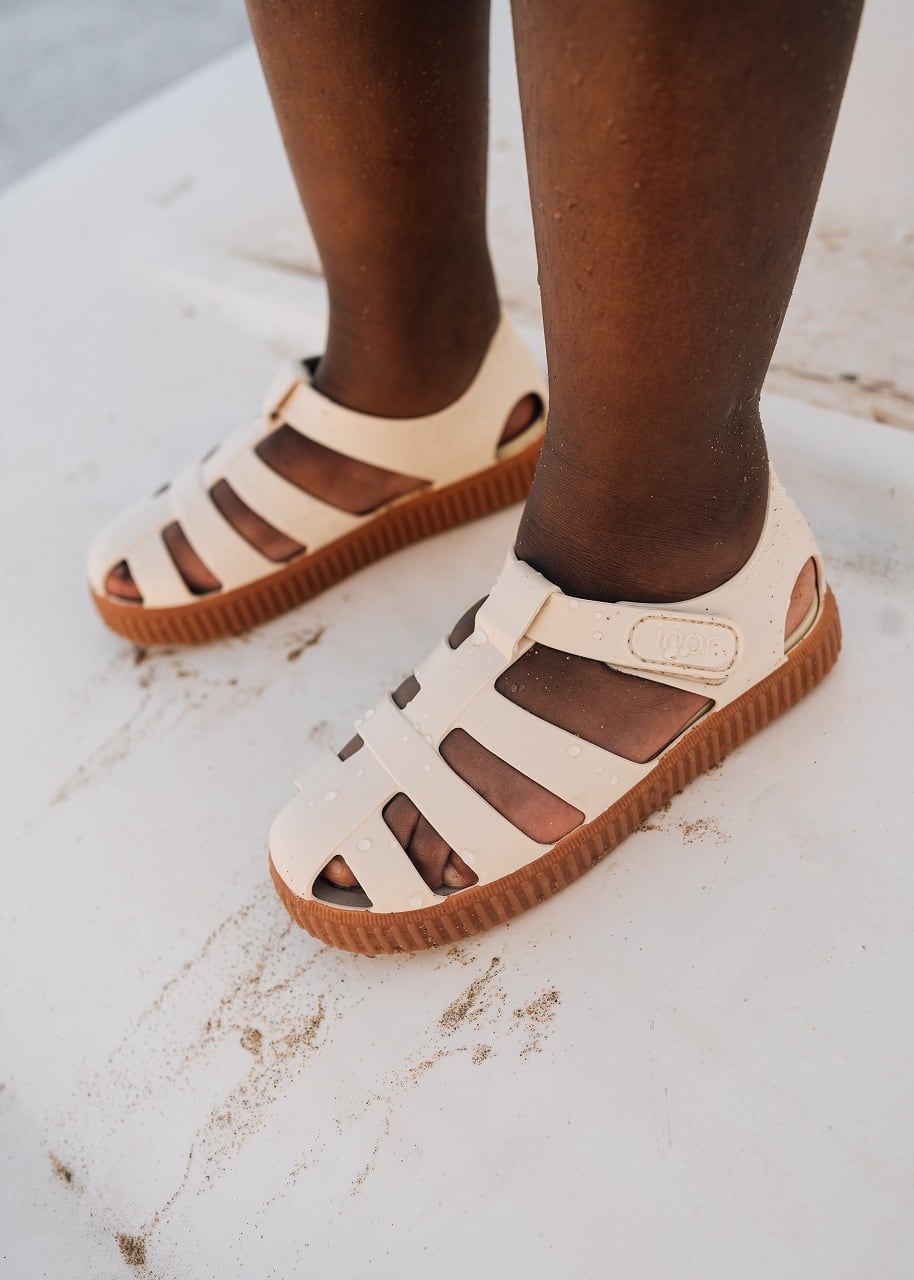 遊びや水辺シーンに最適な柔らかく軽い素材 と、丈夫で快適な履き心地が魅力。