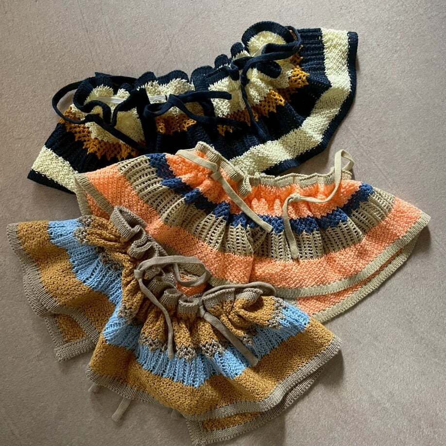 ビスチェ、腰に巻いてニットエプロンに、つけ襟としても♡