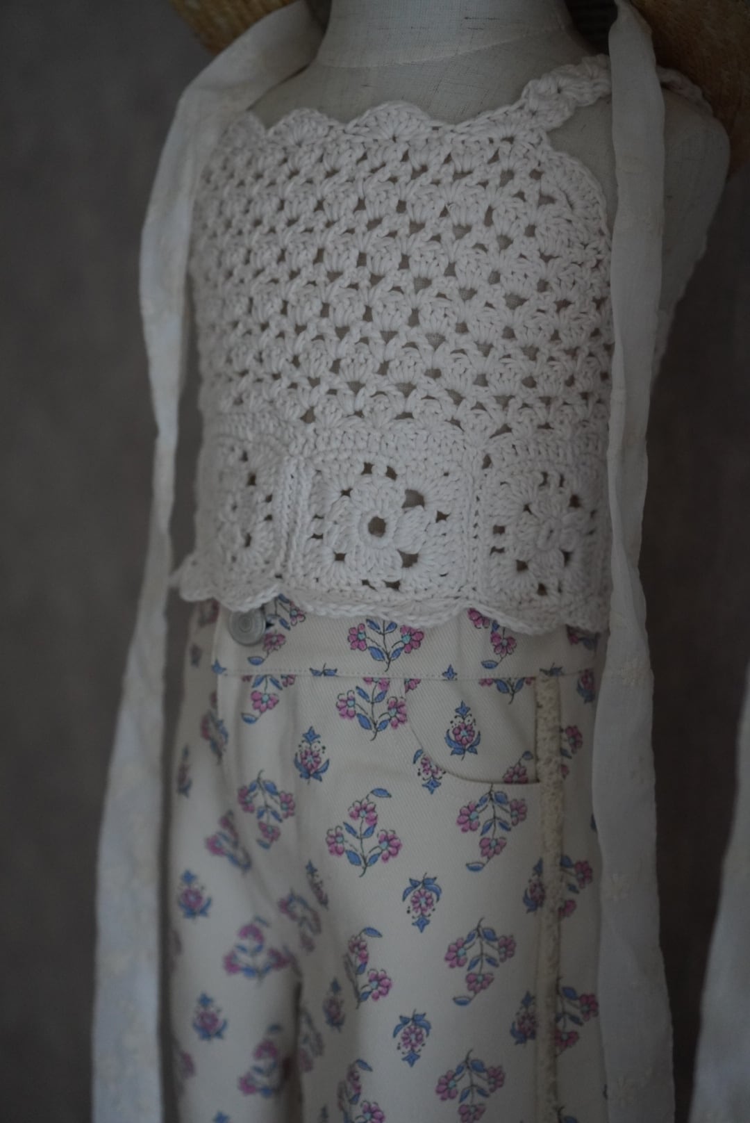 小花のような繊細なプリントが散りばめられた、上品でナチュラルな雰囲気の1枚です。