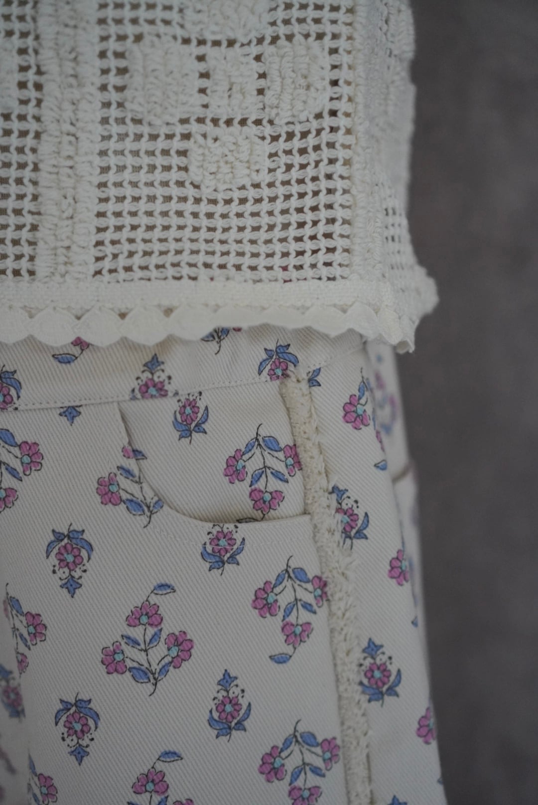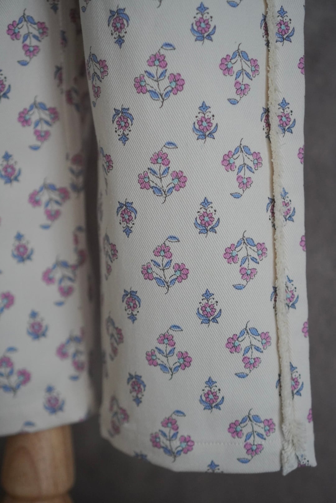 やさしい色合いのClove Printが目を惹く、リラックス感のあるパンツ。