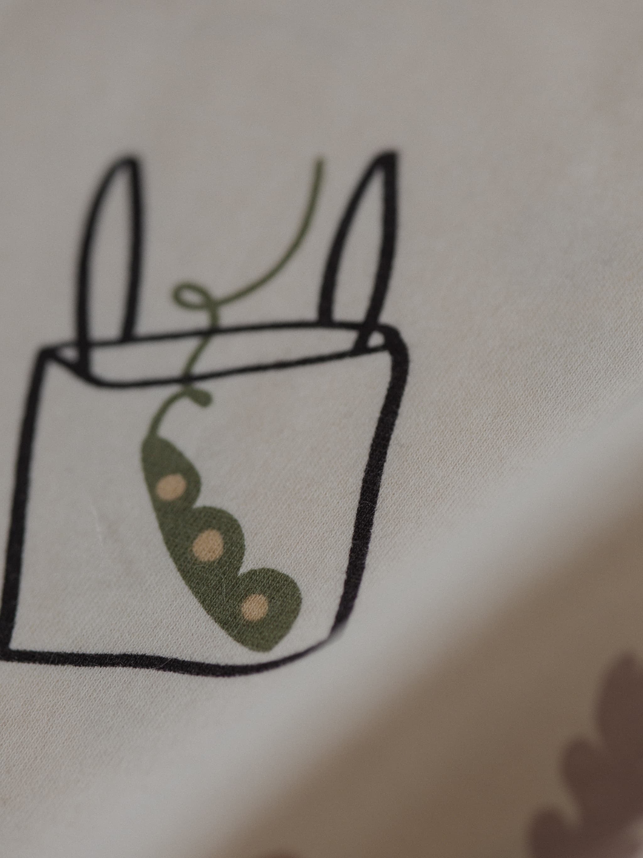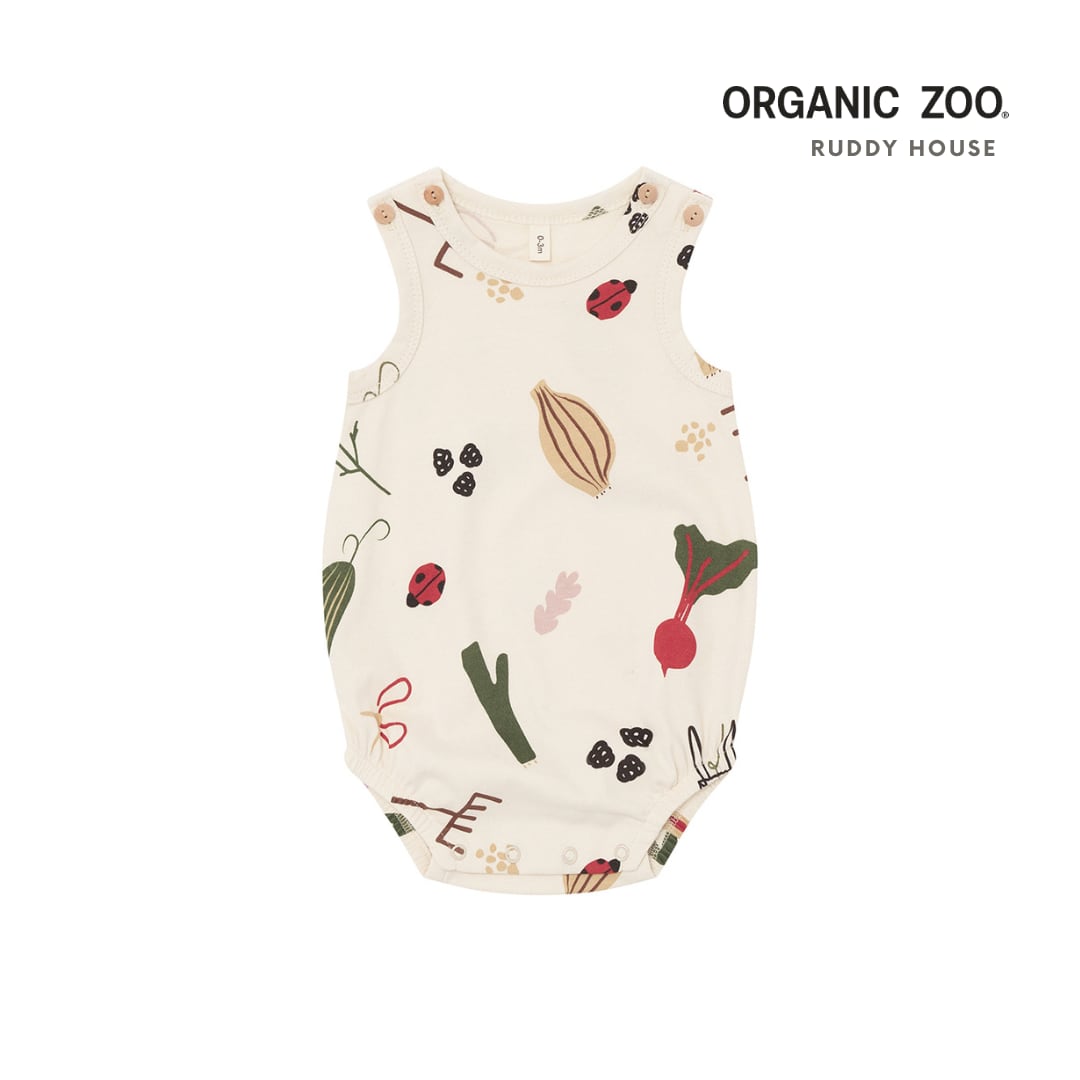 野菜や植物、小さなてんとう虫などが描かれた遊び心たっぷりのBodysuit。