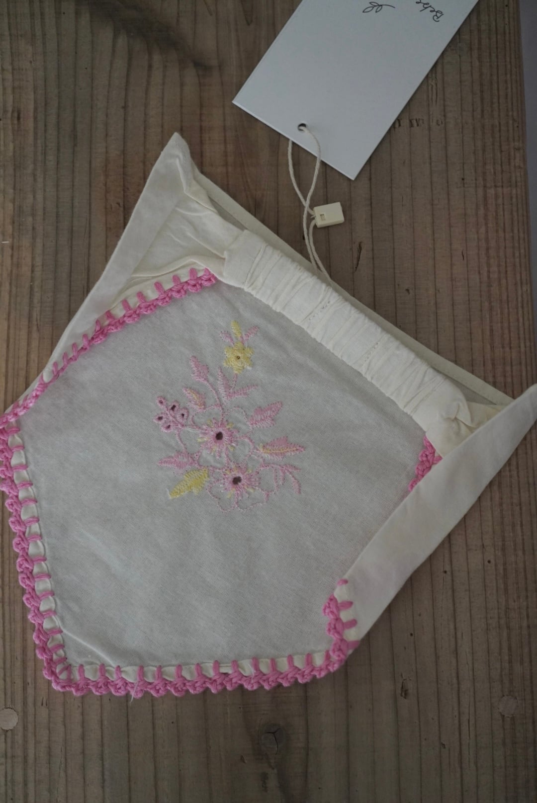 やわらかなクリームカラーに、可憐なお花の刺繍をあしらったスカーフ。