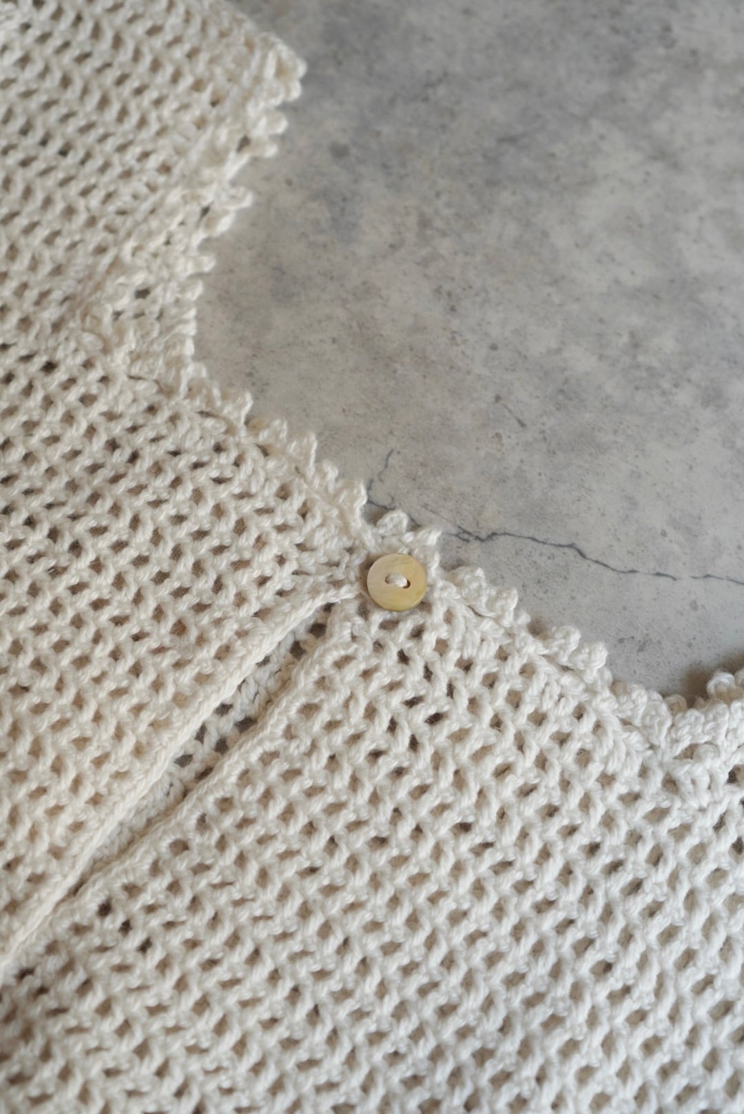 繊細なピコット編みの縁取りが、