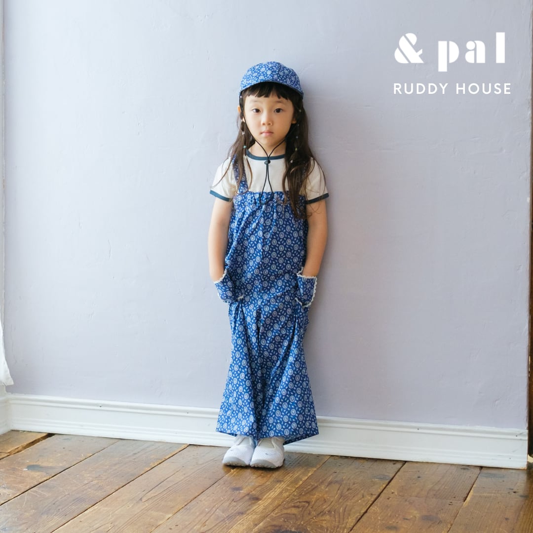 繊細なブルーの小花柄が印象的な、サロペットパンツ。