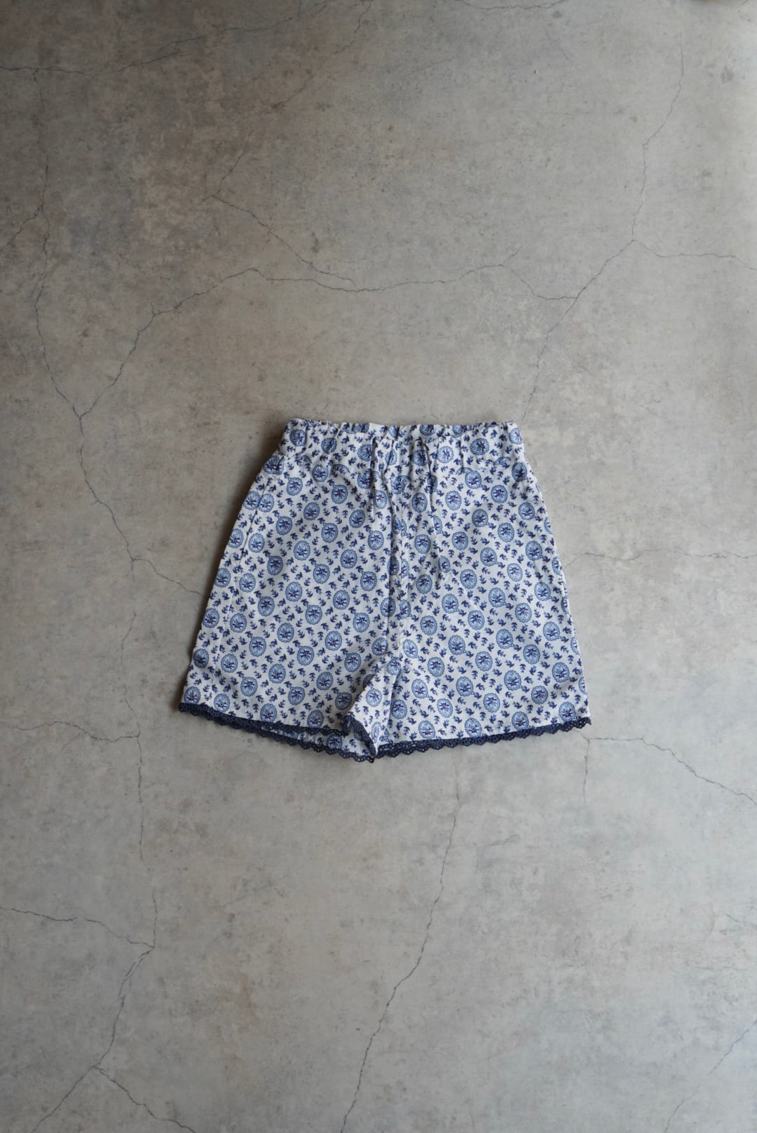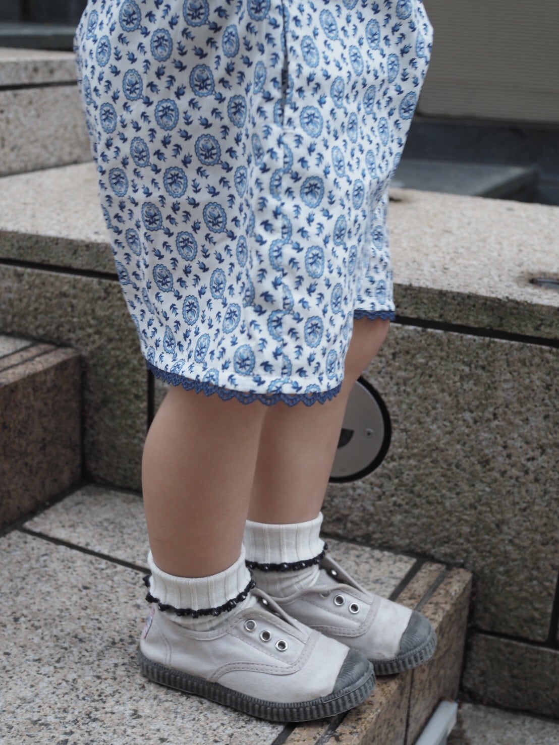 繊細なブルーの小花柄が印象的な、キュロットパンツ。