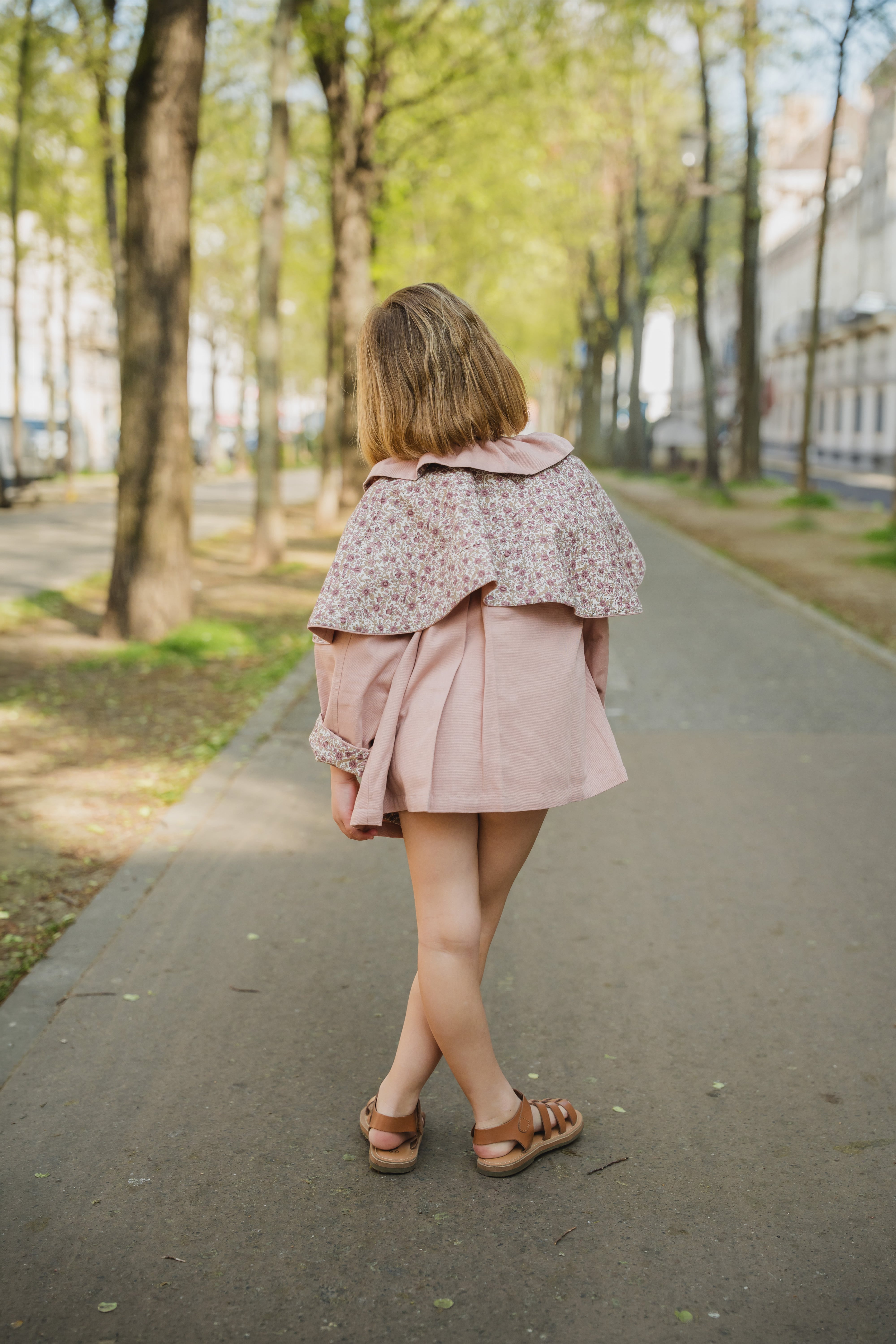 淡いピンクの小花柄が春らしいショート丈のジャケット。