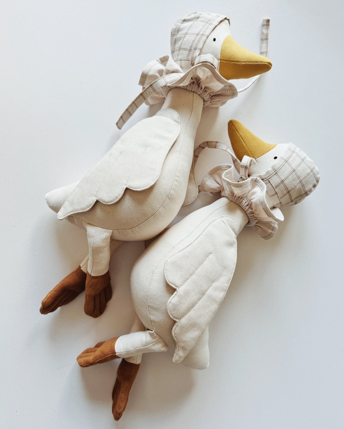 遊び心のあるボンネットとスタイが愛らしいガチョウのドール。