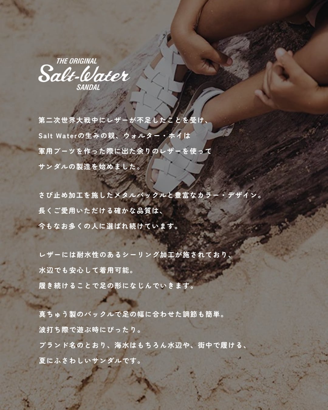 ブランド名のとおり、海水はもちろん水辺や、街中で履ける、
