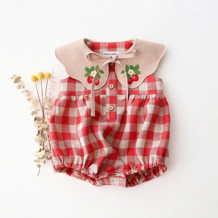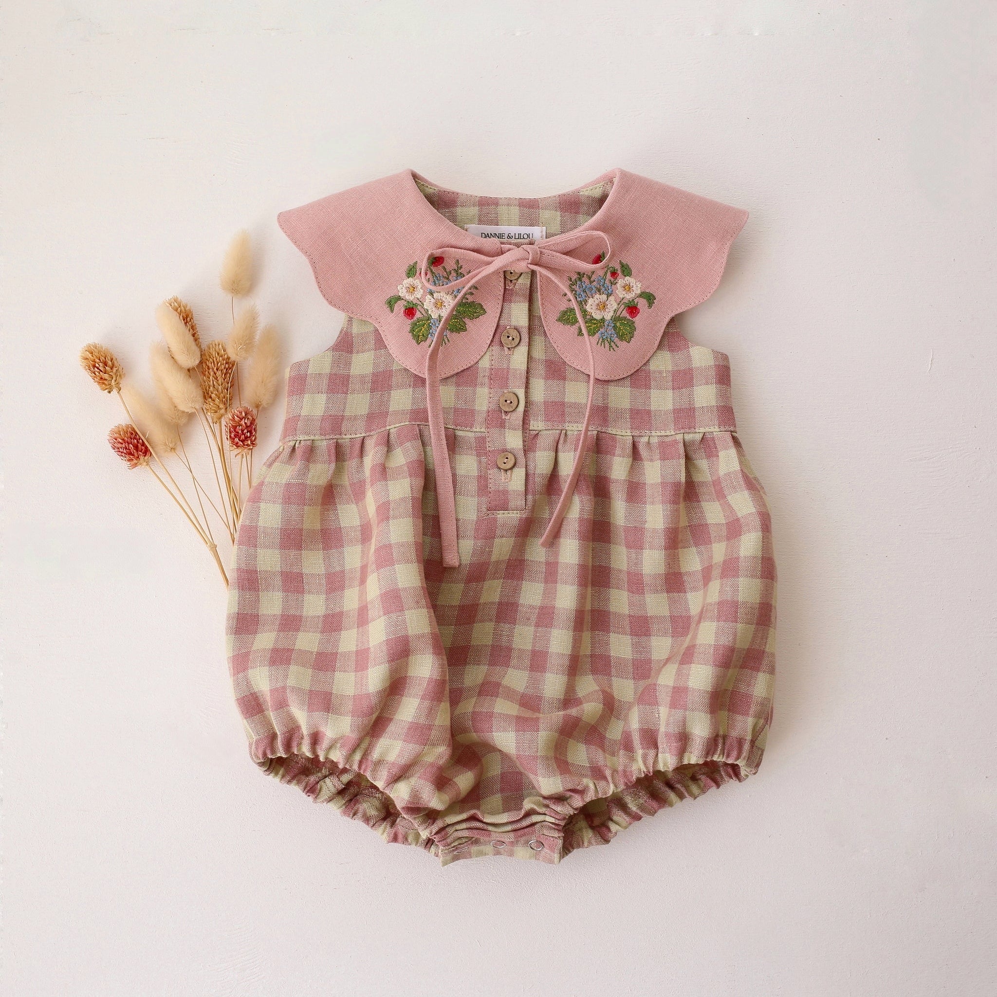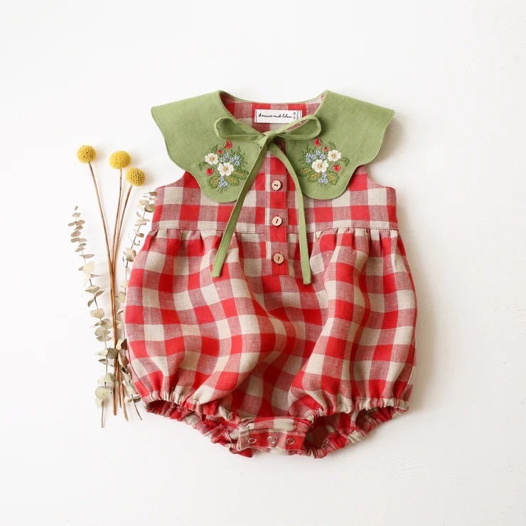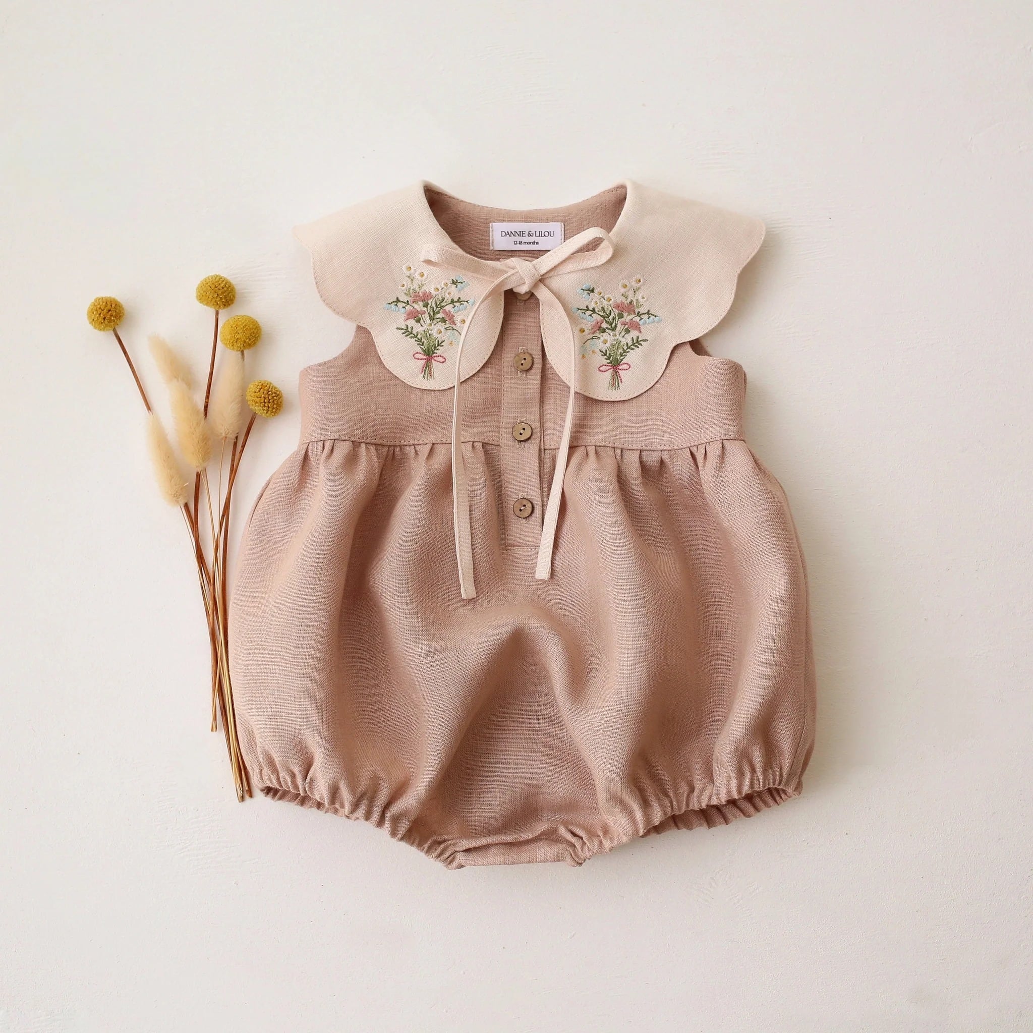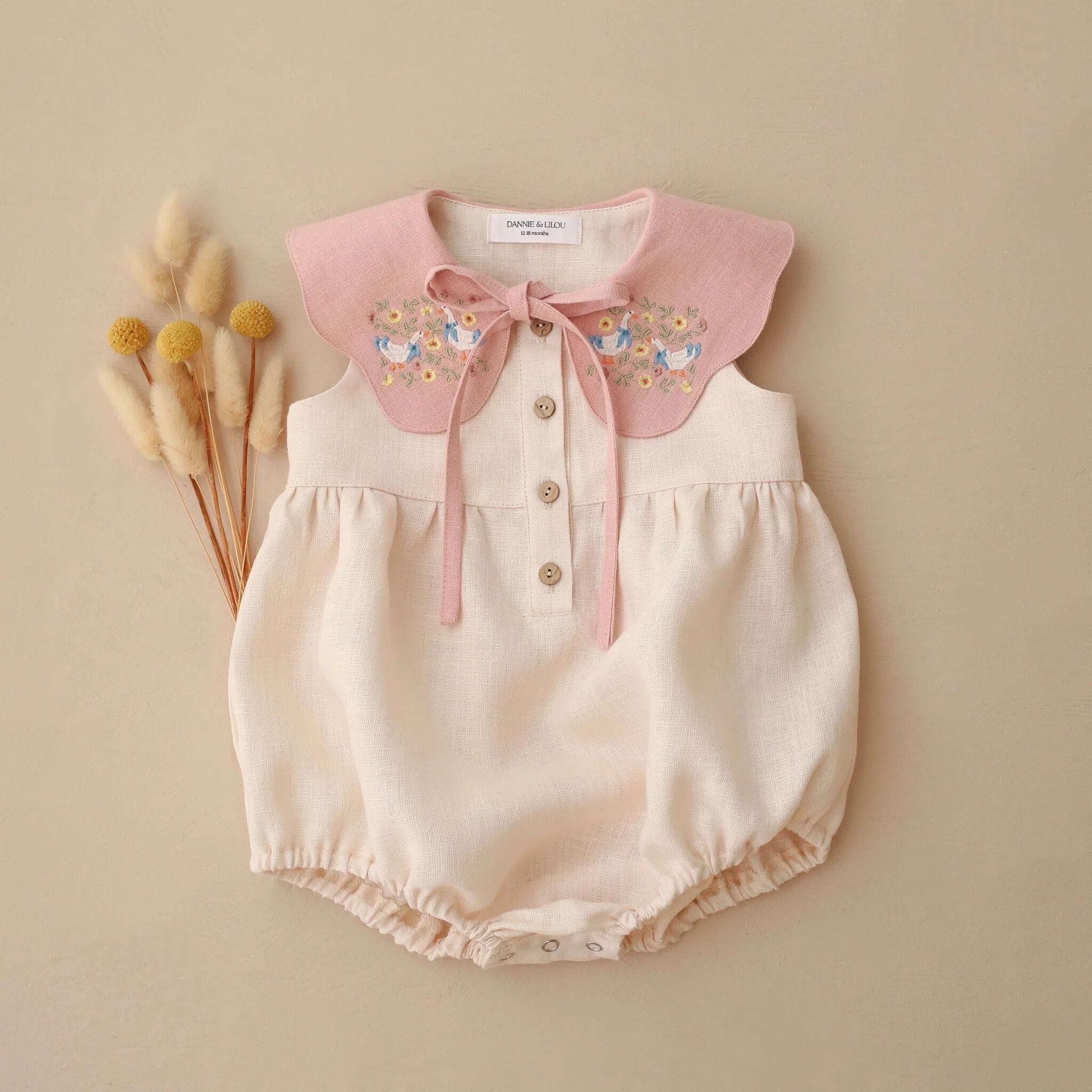 【予約】Dannie and Lilou / LINEN / Bubble Playsuit with Petal Collar