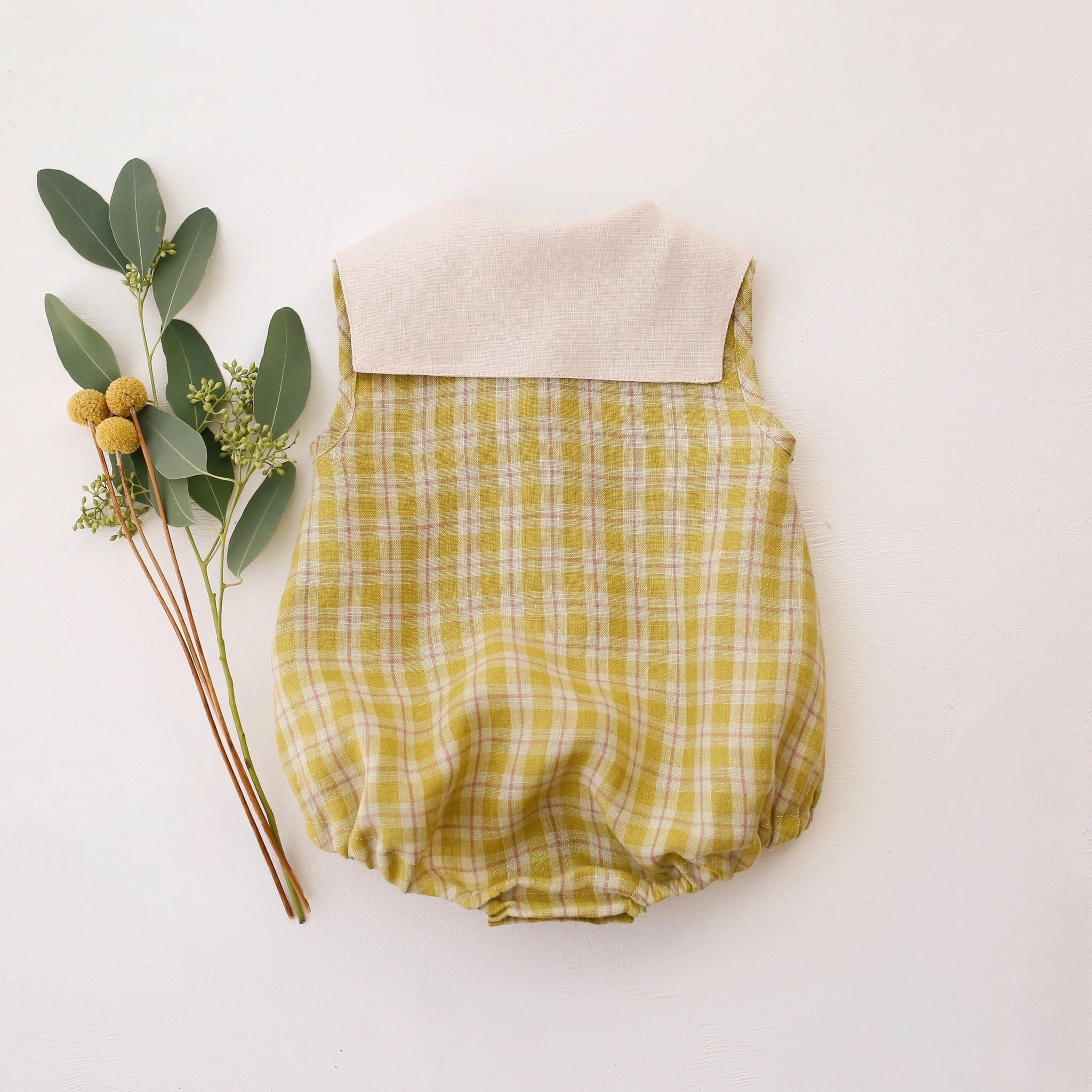 【予約】Dannie and Lilou / LINEN / Tank Bubble Onesie with Square Collar