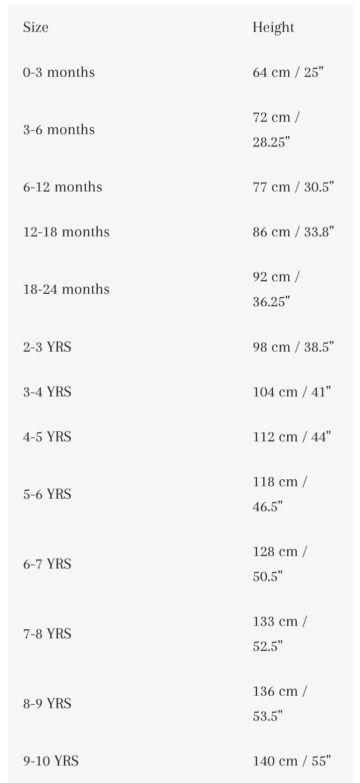 12-18m / 18-24m / 2-3y / 3-4y / 4-5y / 5-6y / 6-7y / 7-8y