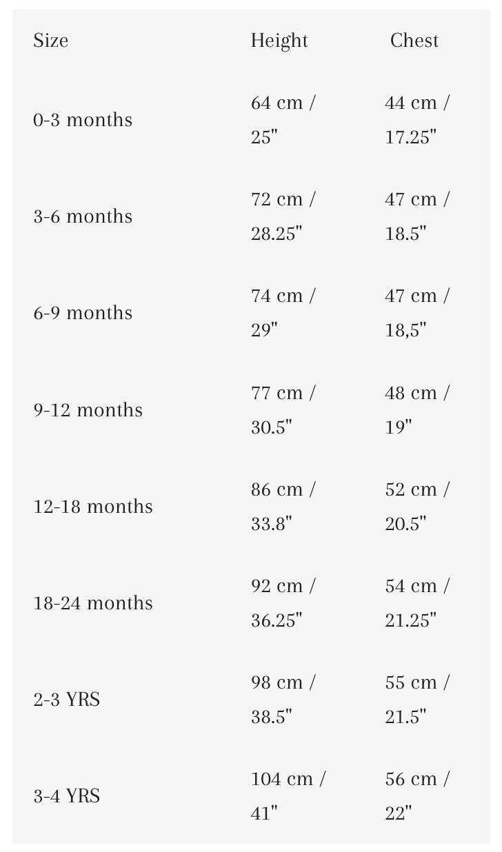 0-3m / 3-6m / 6-9m / 9-12m / 12-18m / 18-24m / 2-3y
