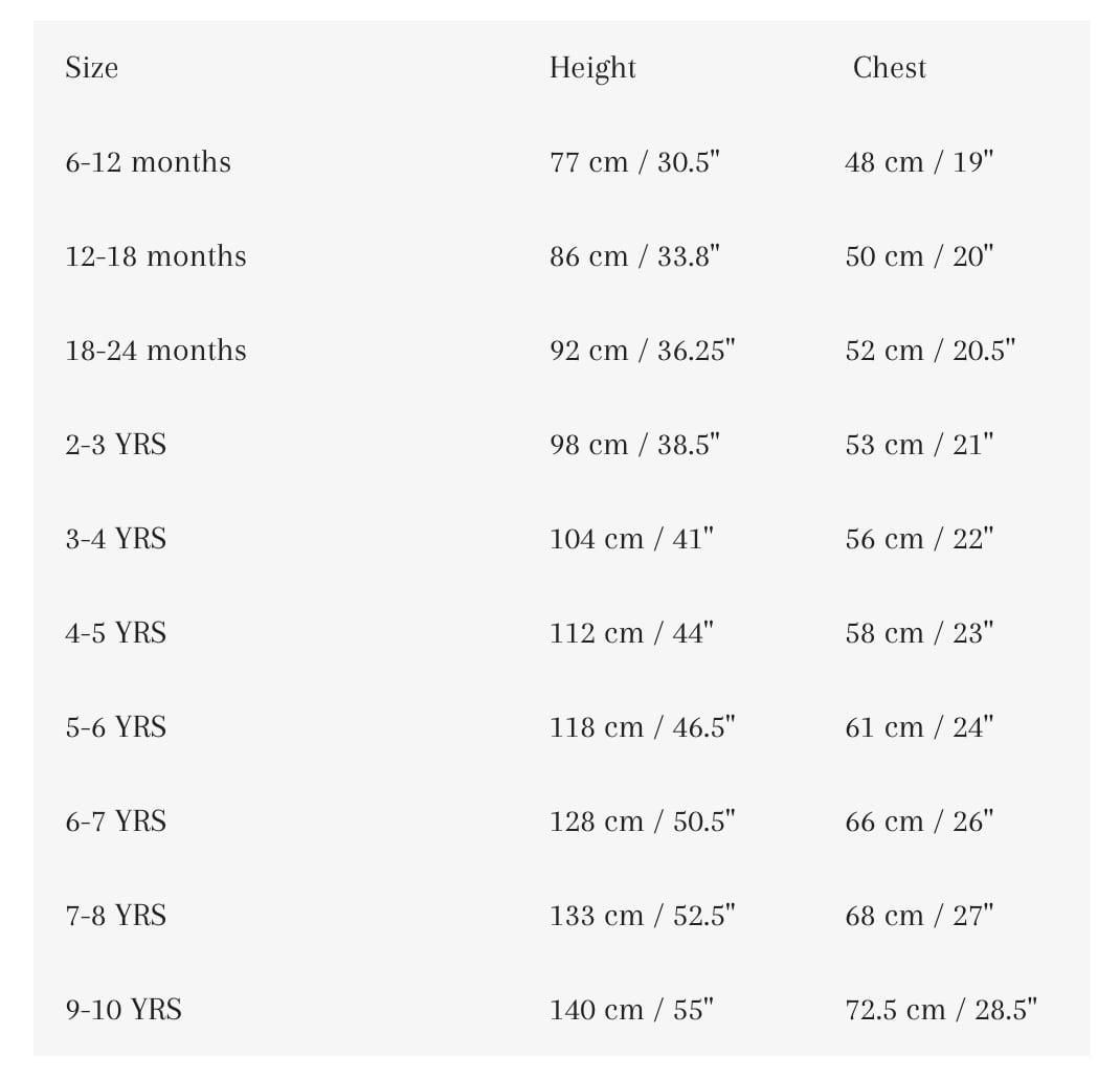 6-12m / 12-18m / 18-24m / 2-3y / 3-4y / 4-5y / 5-6y / 6-7y / 7-8y