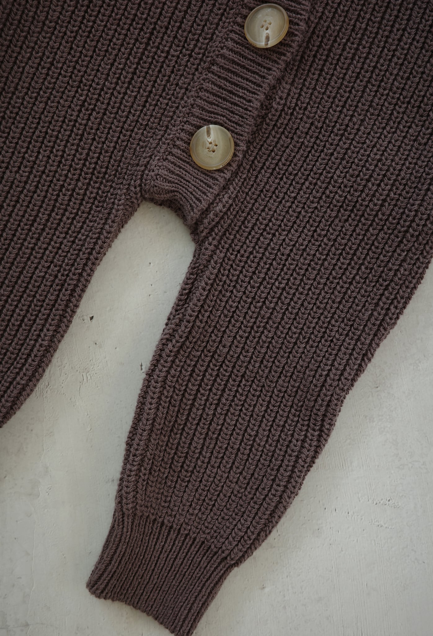 オーガニックコットンニット特有のやわらかな編み地が、赤ちゃんの動きをやさしく引き立てます。